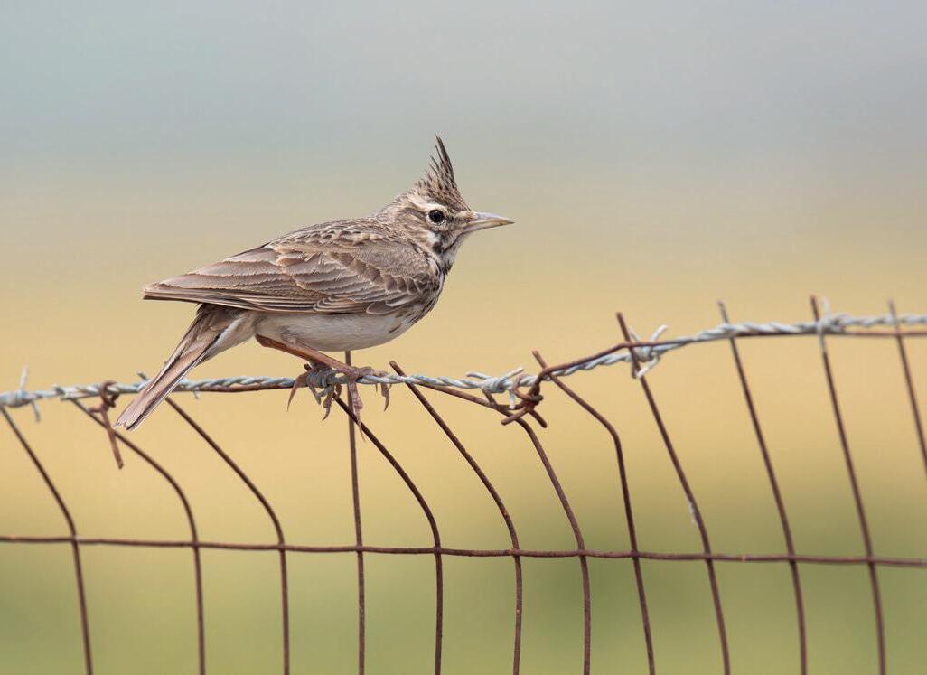 ci- contre : plus loin, c’est un vieux grillage qui accueille un Cochevis huppé.