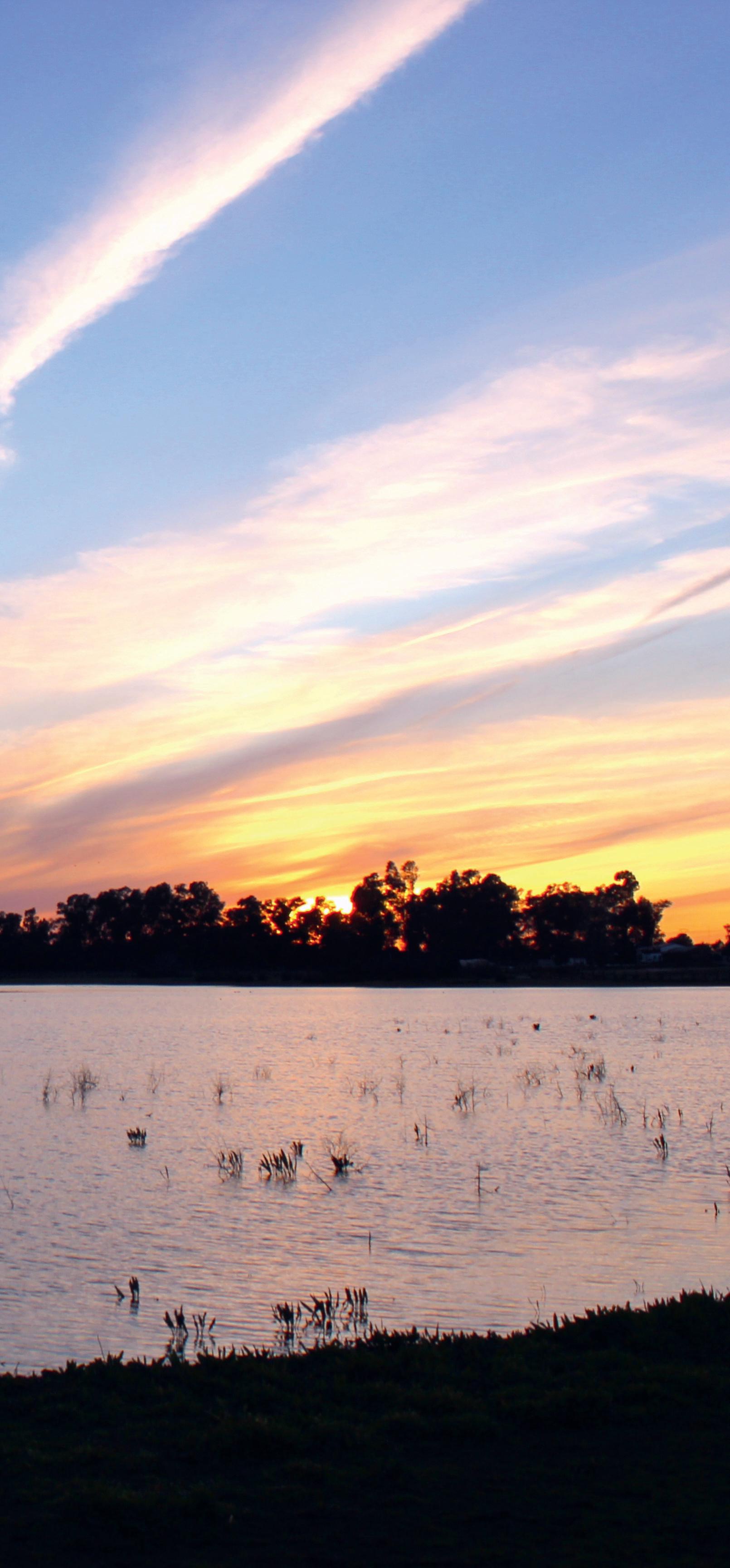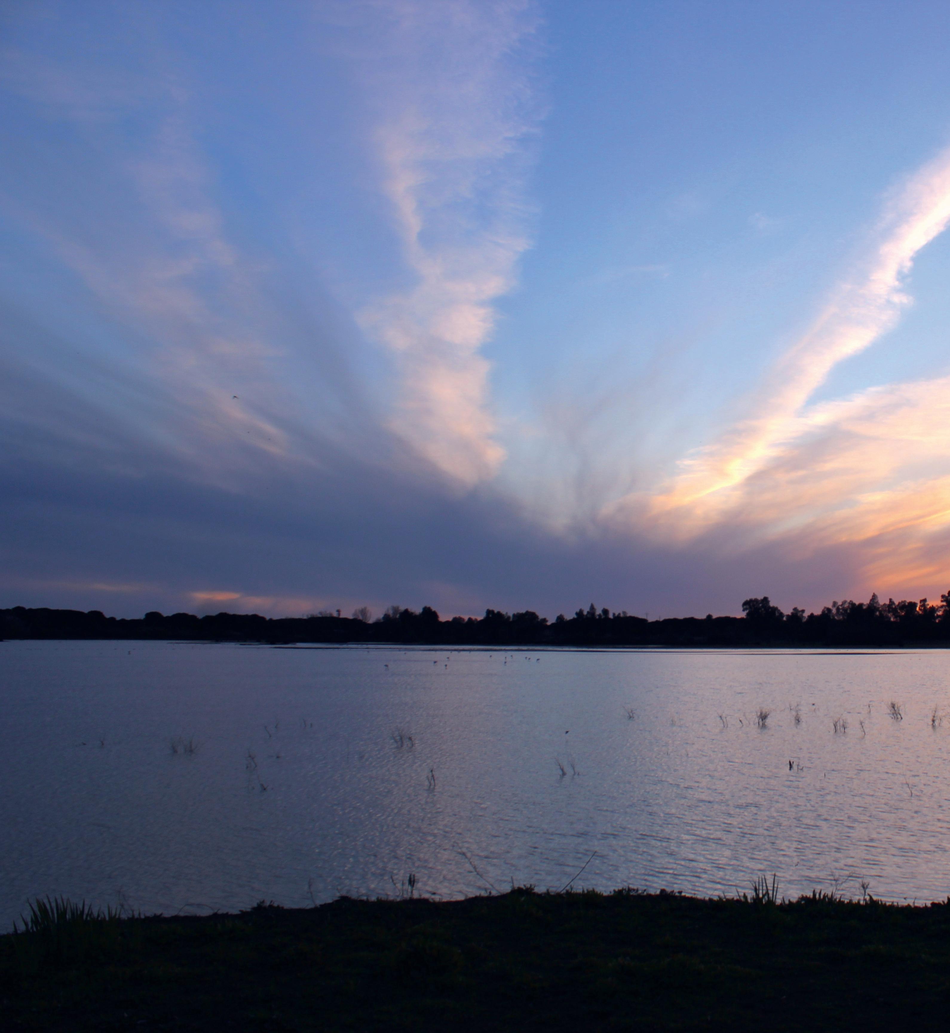 ci - contre : le soir, avant de chercher un lieu où dormir, le crépuscule s’étend sur une des lagunes du Guadalquivir.