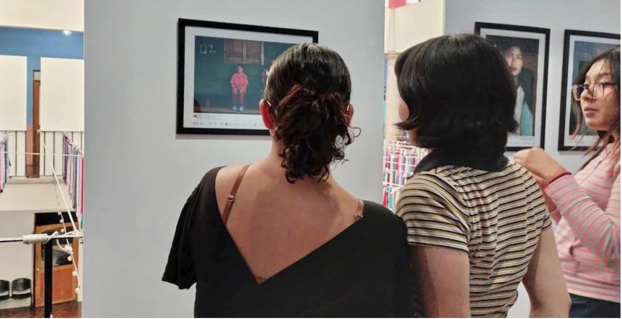 María Fernanda en la exposición en la UAQ.