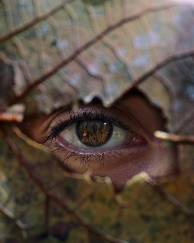 incendios forestales, y convertí la pupila redonda en una pupila ovalada como de reptil, haciendo referencia a que el ser humano es una especie más como el resto de los animales y dar a entender que tenemos el mismo valor y la misma importancia. La imagen invita a hacer reflexión sobre nuestro mundo y cómo lo estamos dejando morir. Es algo muy fuerte, pero es real, y está sucediendo frente a nuestros ojos.