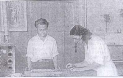 1.Cano Duli: foto në ditët e sotme 2.Fotografi e vjetër: Musa Duli me një infermiere në përgatitjen e materialitStacioni i vjetër shëndetësor