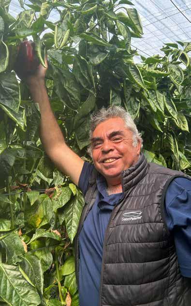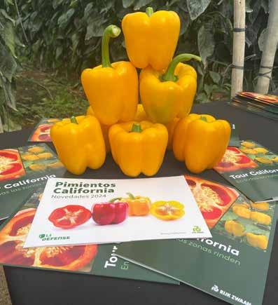 el ciclo, al contrario, tienen muy buena forma, son consistentes y con buen color rojo intenso”. Pero además, Julio Maldonado también tiene California amarillo y esta campaña ha apostado por Sway RZ ya que “quería un pimiento productivo y que tuviera una planta abierta y de raíz fuerte con buenos cuajes, y este material me lo ha dado. Los frutos tienen un calibre G muy parejo, con un color llamativo muy bueno para la comercialización. Volveré a repetir sin duda porque para mí ahora mismo no hay nada que le supere”.