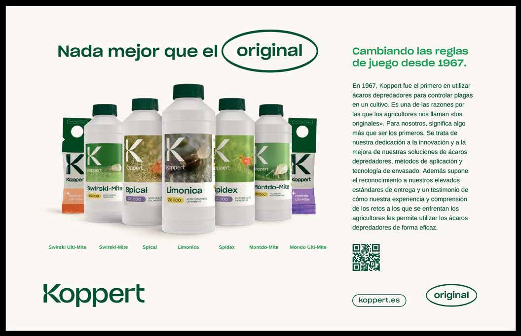origen natural, mostrando ese rápido efecto de choque en el control de la plaga y una rápida degradación tras la aplicación. Los mismos resultados se han obtenido en los ensayos en control de mosca blanca y pulgón en cítricos o en mosquito verde y polilla del racimo en viña.