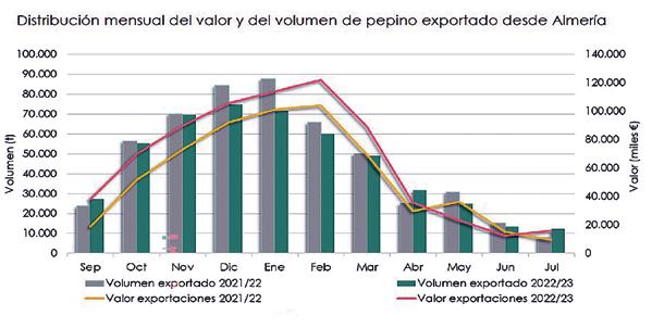 do un comportamiento del precio más desfavorable, con una caída de un 24,6% respecto a 2022/23, y de un 5,5% en comparación con la media de los cinco últimos años, el único producto analizado que padece esta situación. El pepino ha sufrido una caída ligeramente superior a la de la berenjena, situándose en una media de 71 céntimos por kilo.