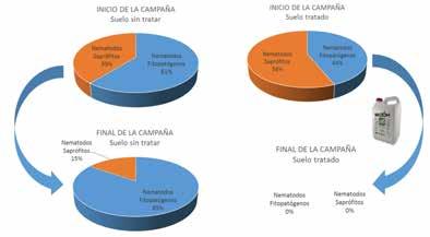 Del recuento de fitopatología nematicida se obtuvo un incremento y una mejora significativa respecto al recuento de nemátodos saprófitos originando un suelo más higienizado y con una microbiología más estable frente a la inicial.