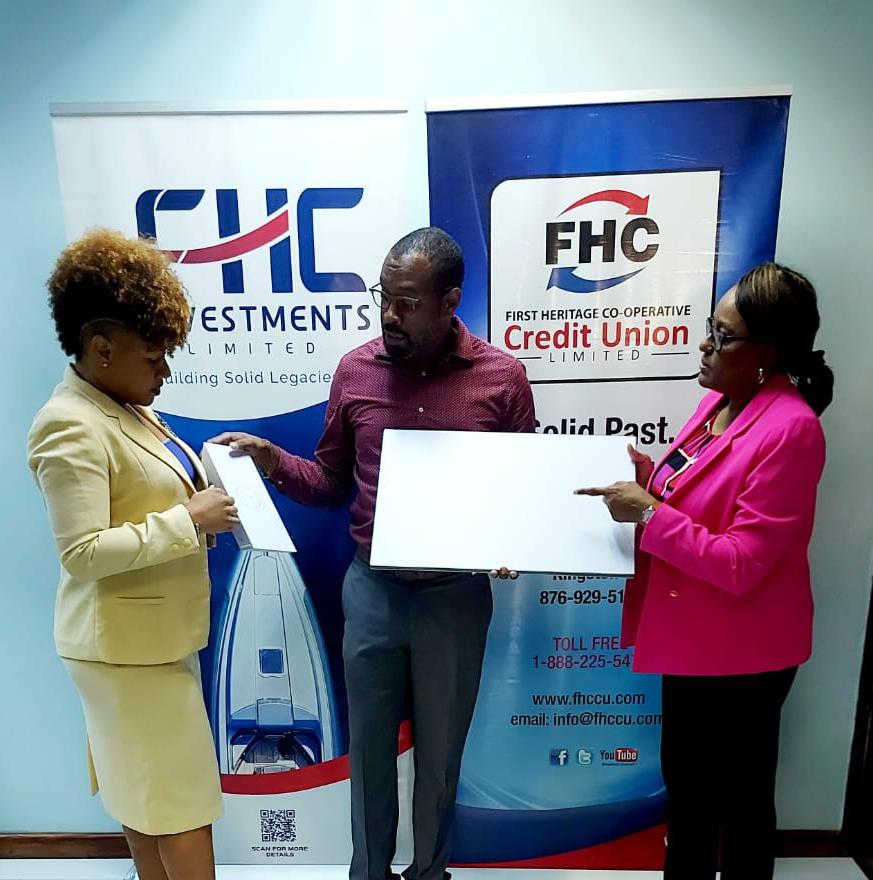 Vera Lindo, Member Services Manager at the Jamaica Co-operative Credit Union League, discusses Starlink connectivity with FHC’s Chief Information Officer, Omari Hodelin, and Assistant General Manager for Marketing, Communications & Member Experience, Michelle Tracey. The Starlink unit was generously donated to FHC Credit Union and FHC Investments by the World Council of Credit Unions.