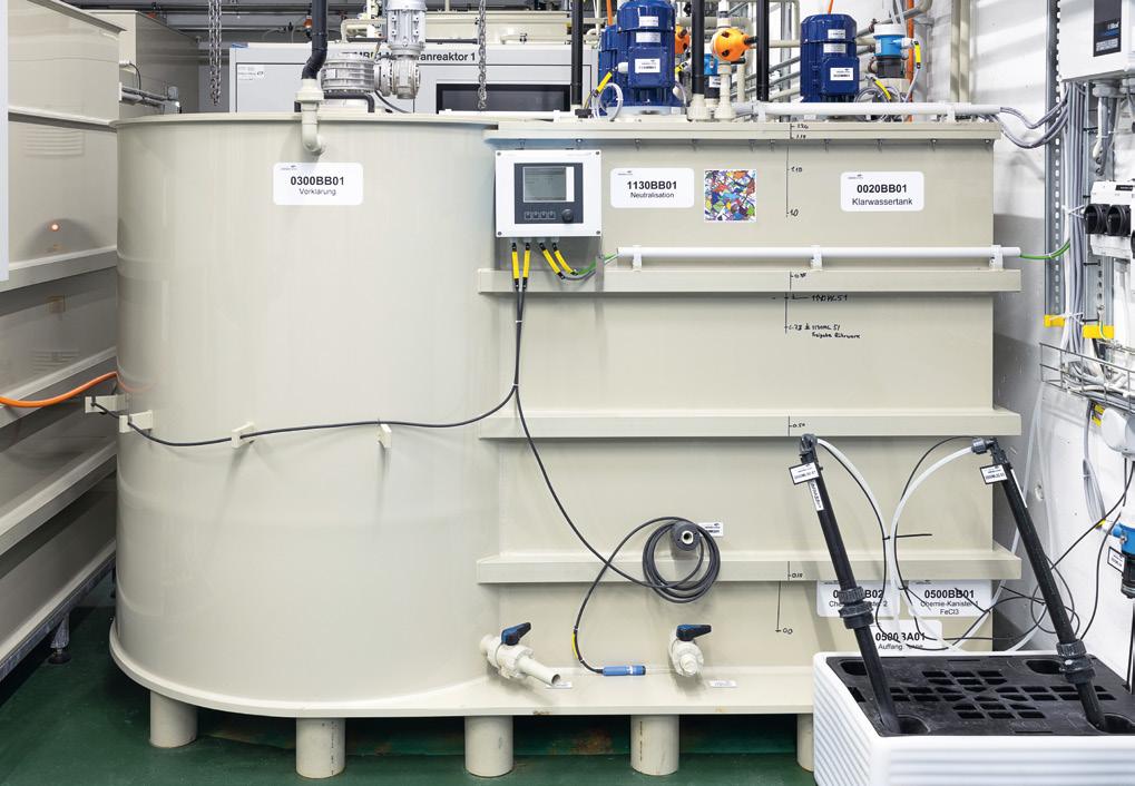 New wastewater treatment methods are analysed in the environmental plant; filtration and purification steps are tested and combined to ensure the best possible purification.