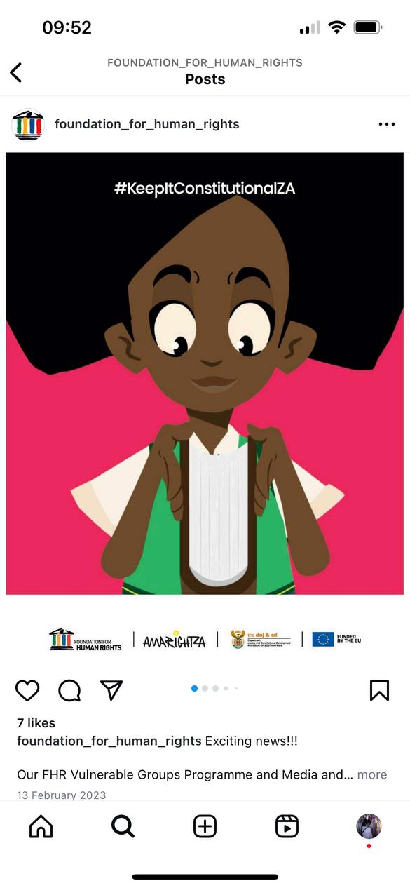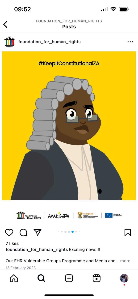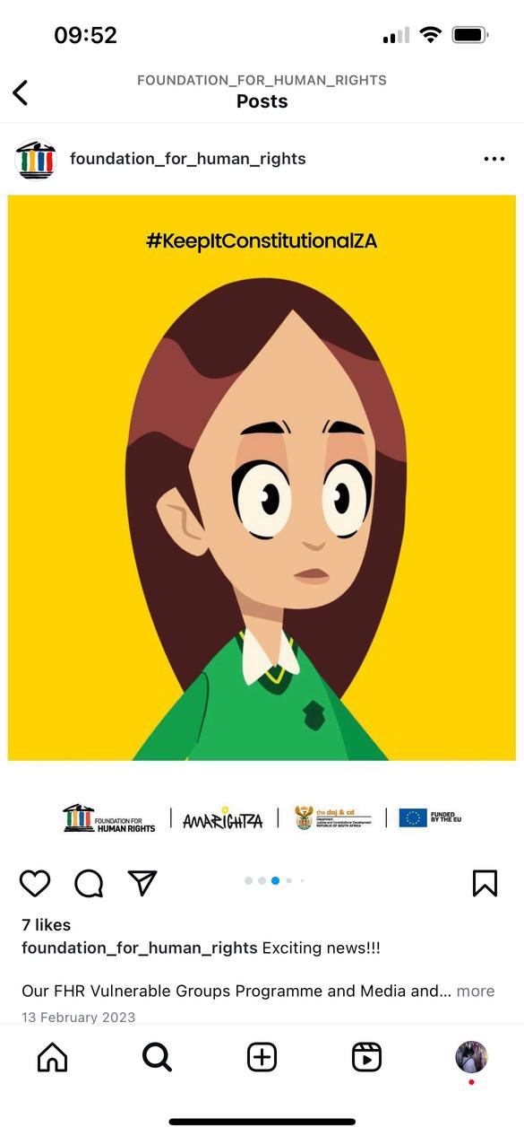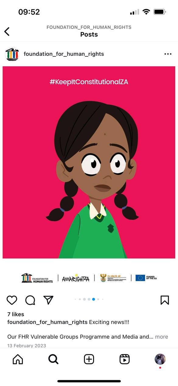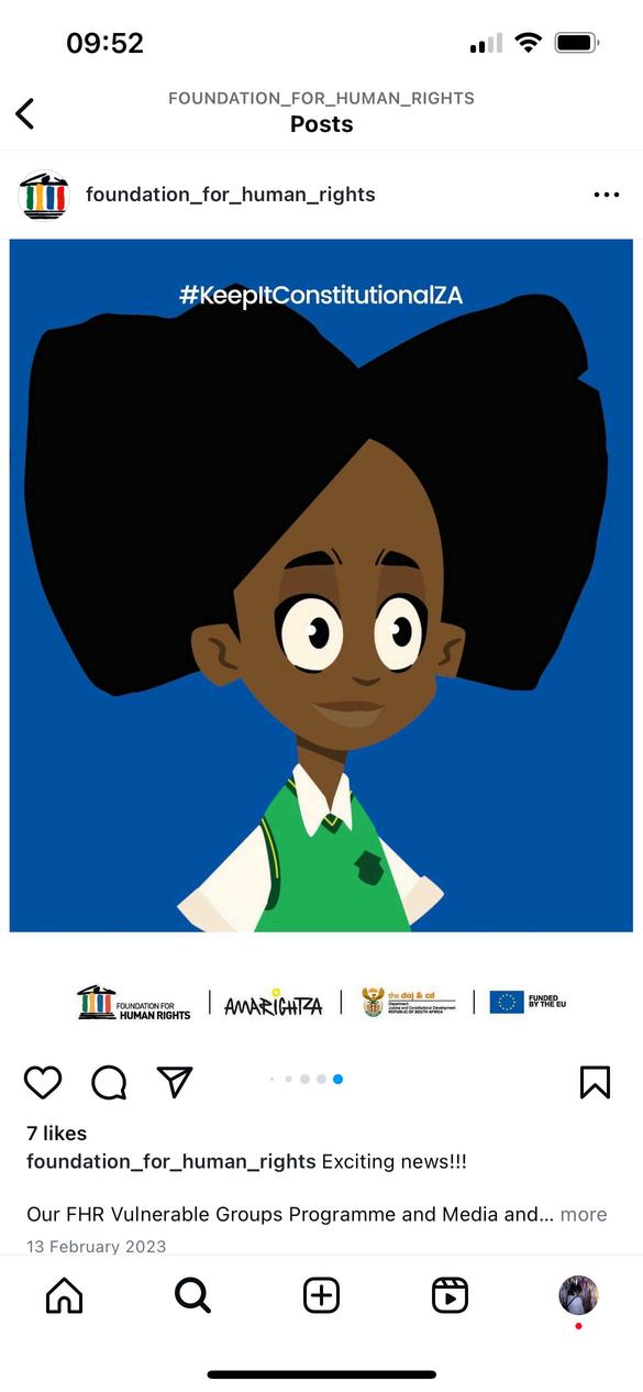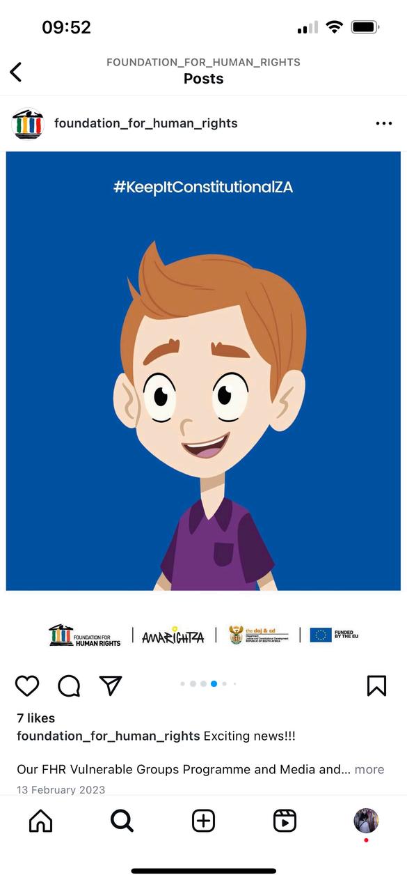 FHR's Constitutional education series has short and simple animation episodes for use along with the lesson plansintheHumanRightsClubsguide. The Constitutional animation episodes can be found on www.fhr.org.za