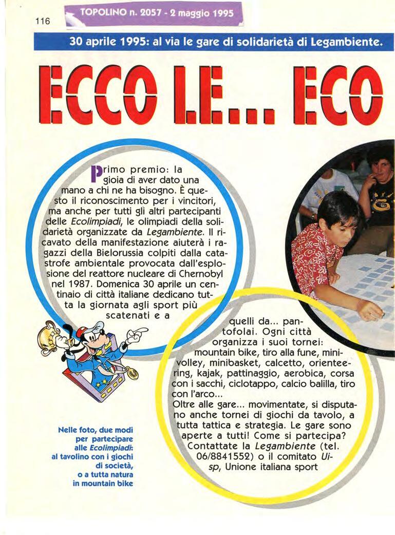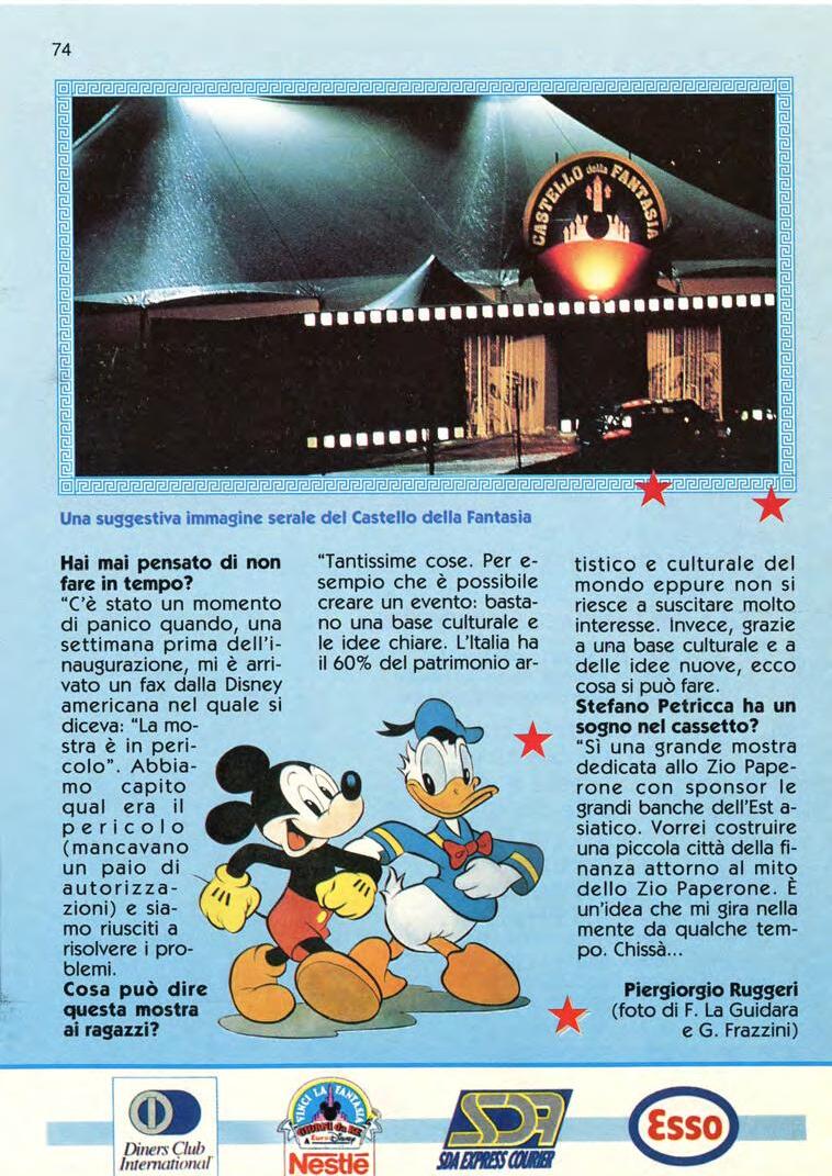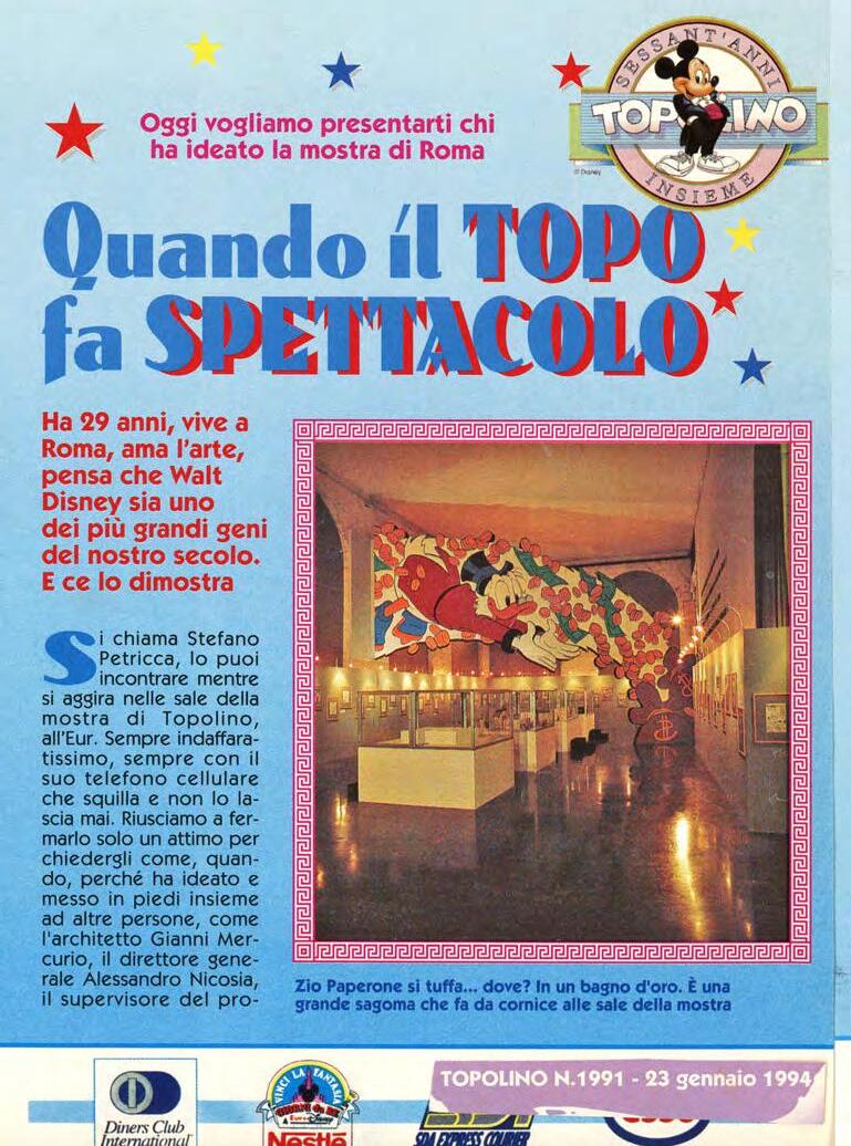 Da allora, iniziai una collaborazione con “Topolino”, fatta di interviste ai personaggi dello sport e dello spettacolo, articoli con foto sui Parchi Nazionali, recensioni di film Disney insieme ai piccoli lettori…