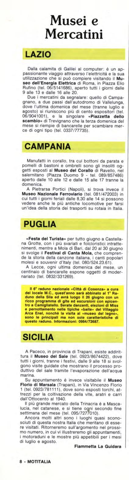 Mi piaceva scrivere per Motitalia, perché mi dava modo di fare tanti approfondimenti su aspetti anche meno conosciuti del Motociclismo: dalla leggendaria Sport Production ai primi campionati per donne pilota, dall’abbigliamento tecnico agli itinerari turistici, dalle questioni assicurative all’intervista con il sindaco di Roma e con l’attore Enrico Montesano a proposito dell’irrimediabile asfalto di Roma.