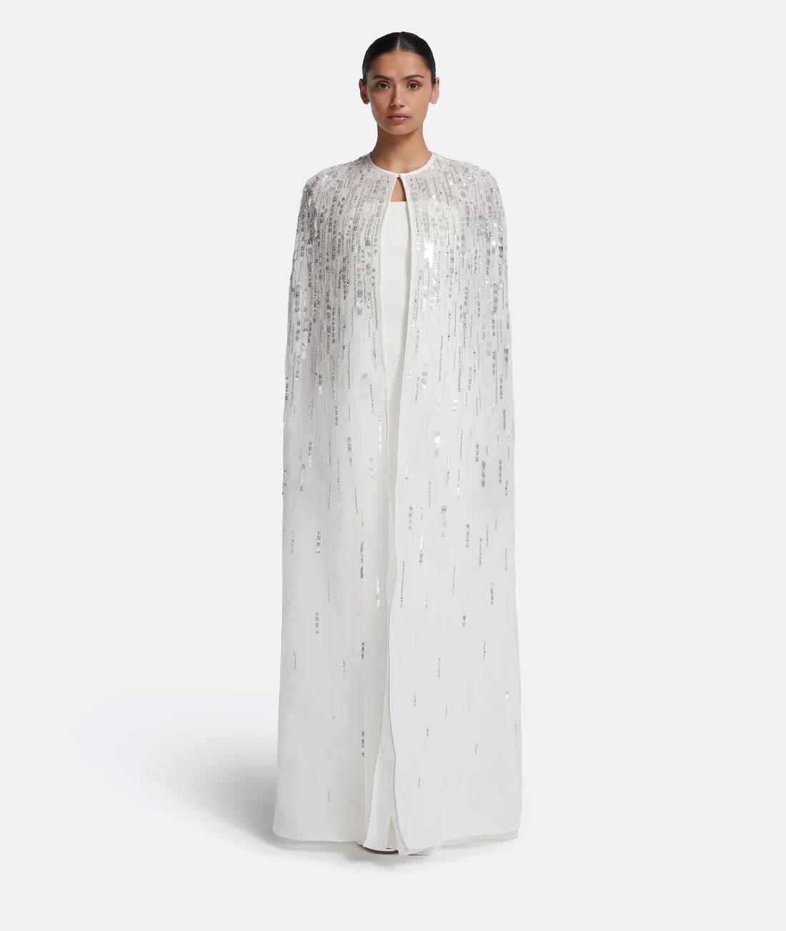 los accesorios en 2026 se centran en la transformación del look. las capas ligeras, los velos-capa y las mangas desmontables (especialmente las abullonadas o tipo poeta) permiten pasar de una ceremonia solemne a una fiesta relajada sin cambiar de vestido. En cuanto a joyería, los broches joya colocados en cinturas o escotes asimétricos son el detalle viral del año. para el cabello, triunfan los lazos Xl, las diademas de perlas y los pañuelos de seda, aportando un toque editorial y sofisticado.