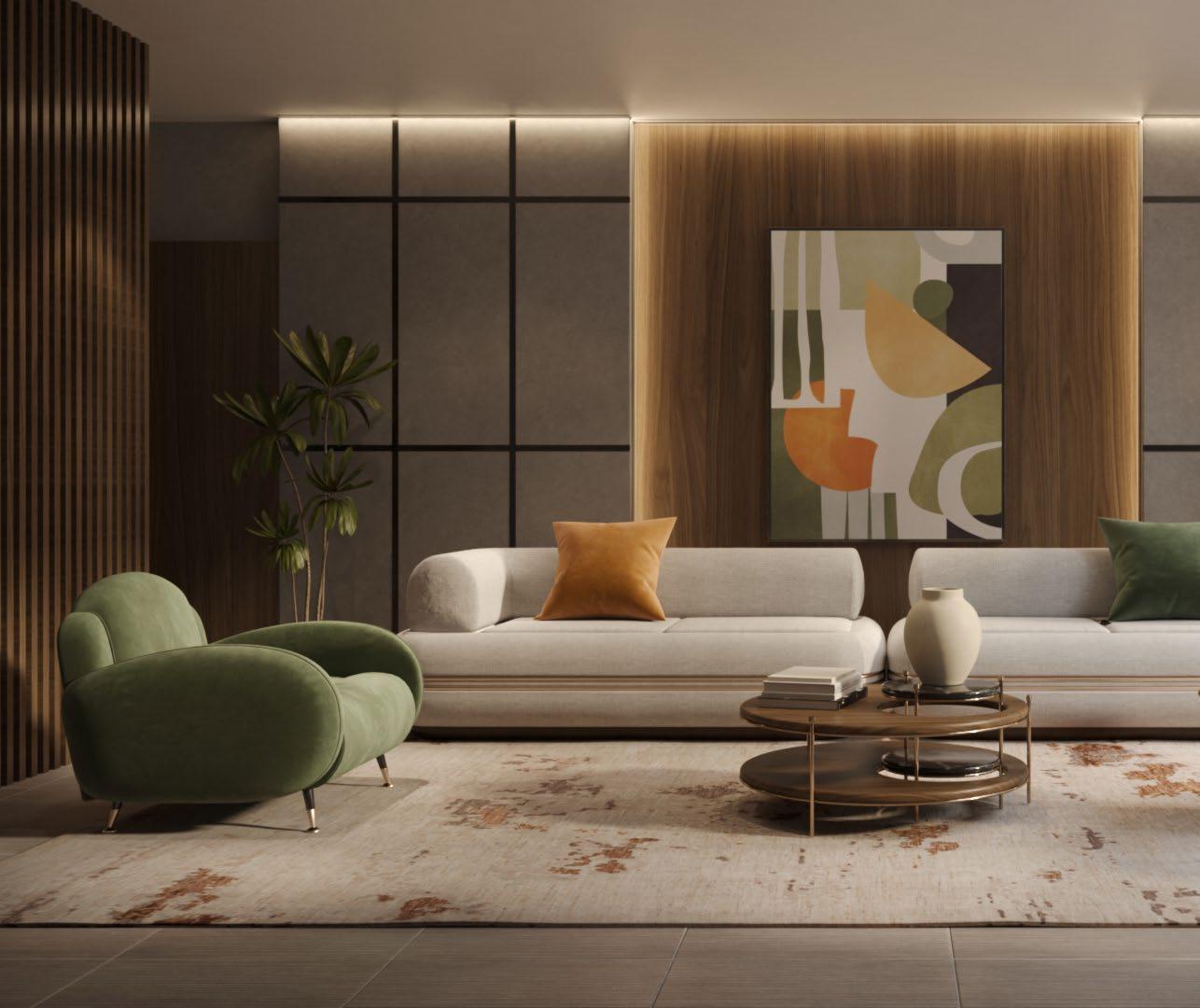 Sala de estar con estética Mid-Century