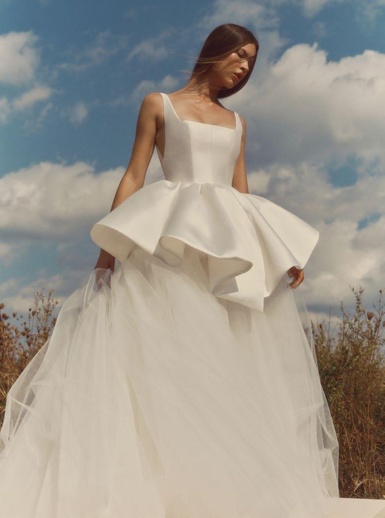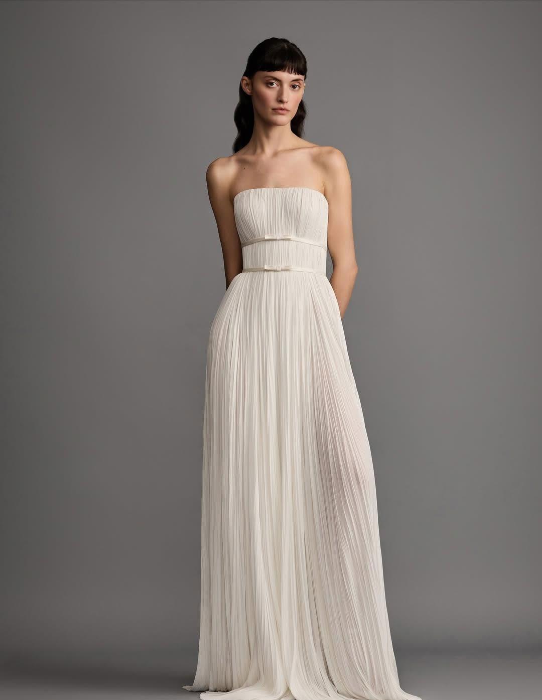 la tendencia principal es la versatilidad y el movimiento. predominan las siluetas fluidas de inspiración helénica con drapeados etéreos, junto al regreso triunfal de la cintura vasca (en forma de “V”), que estiliza el torso con un aire de “época” renovado. también veremos mucho el minimalismo arquitectónico, utilizando tejidos con estructura como el mikado o el crepé grueso para crear cortes limpios y escotes geométricos (cuadrados o rectos). El objetivo es una elegancia honesta y cómoda, alejada de la rigidez excesiva de años anteriores.