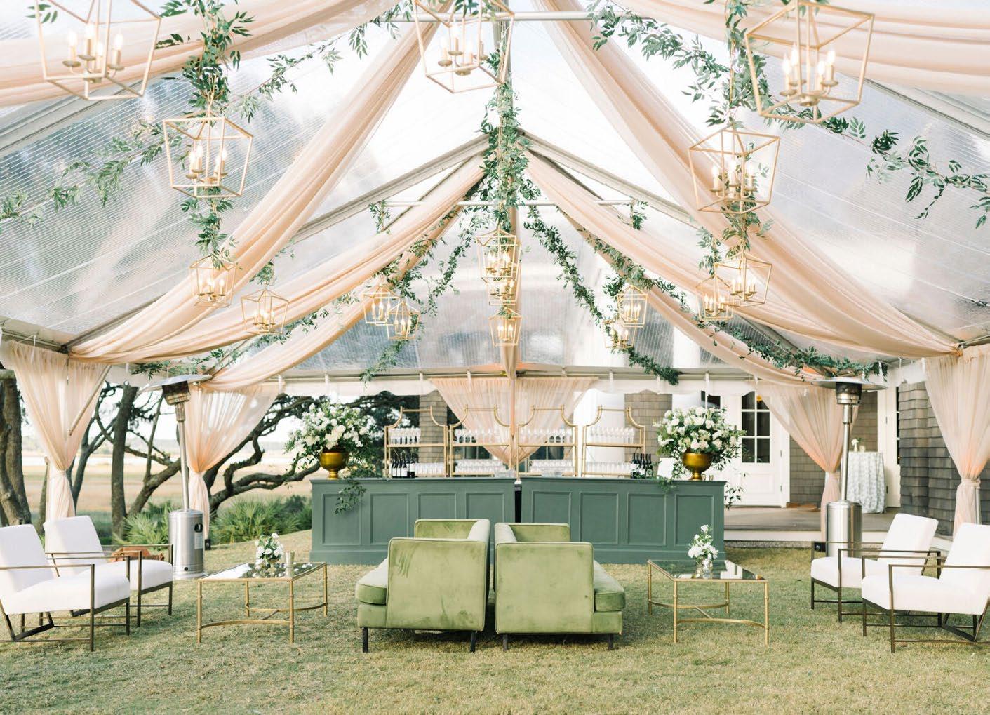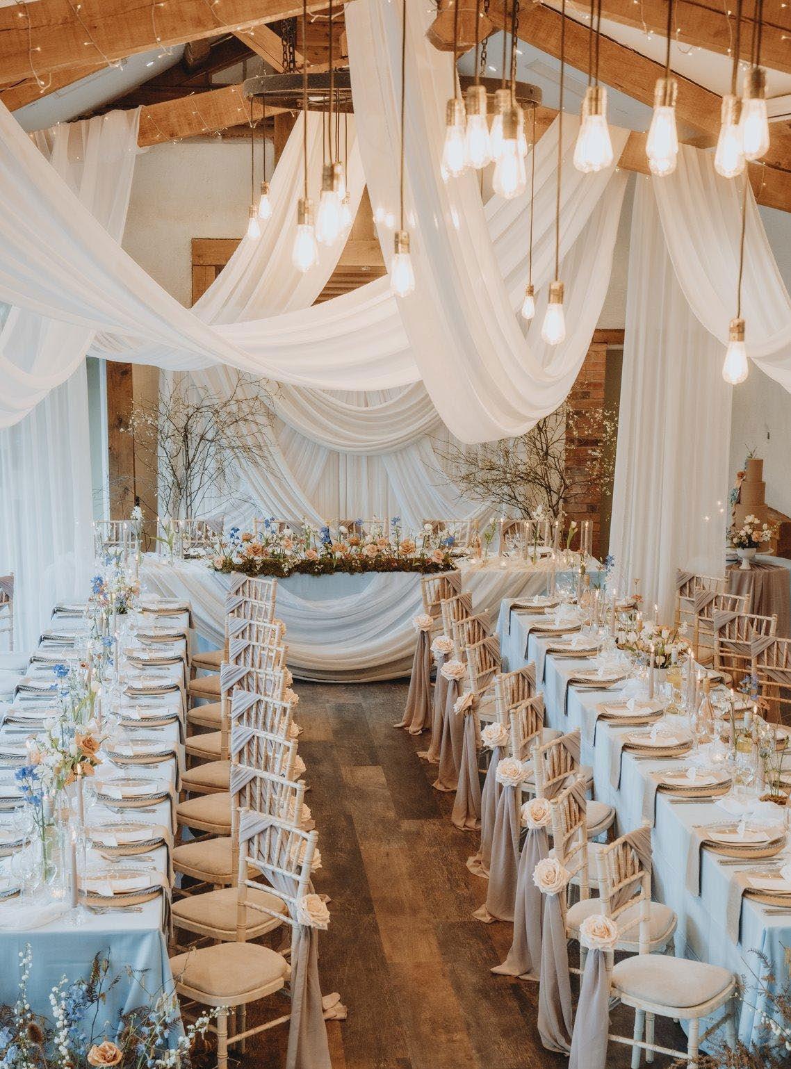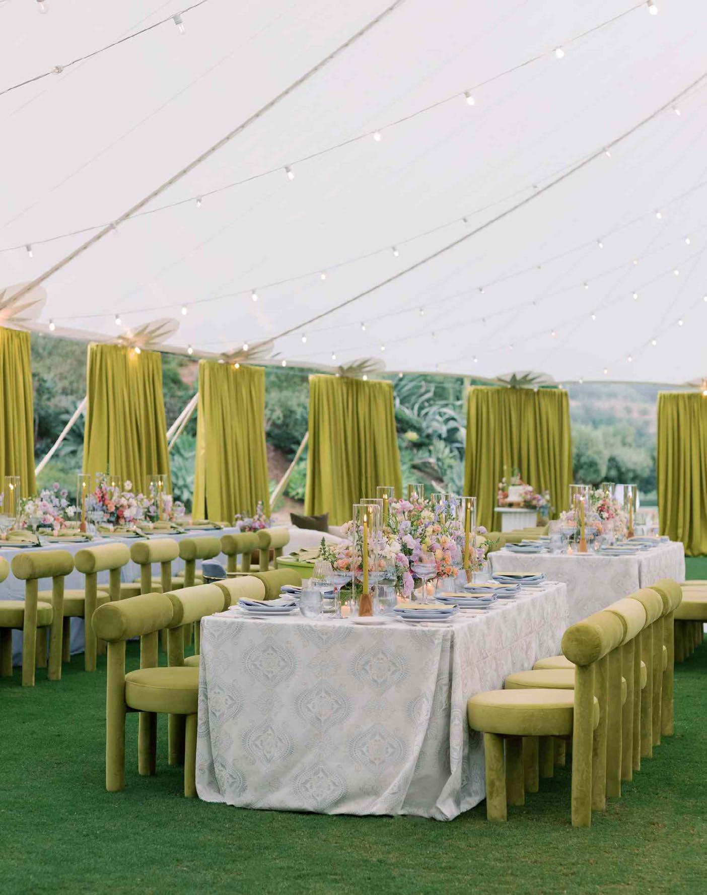 El estilo mediterráneo chic será el gran protagonista, utilizando materiales táctiles y naturales. Veremos mesas con manteles de lino crudo, vajillas de cerámica artesanal y detalles en platería antigua que aportan un aire noble. las estructuras serán fluidas, con techos vestidos de gasas y tules que crean atmósferas envolventes. Además, se imponen las texturas orgánicas como el mimbre y la madera con veta visible, buscando una elegancia que se pueda “sentir” al tacto y no solo ver.