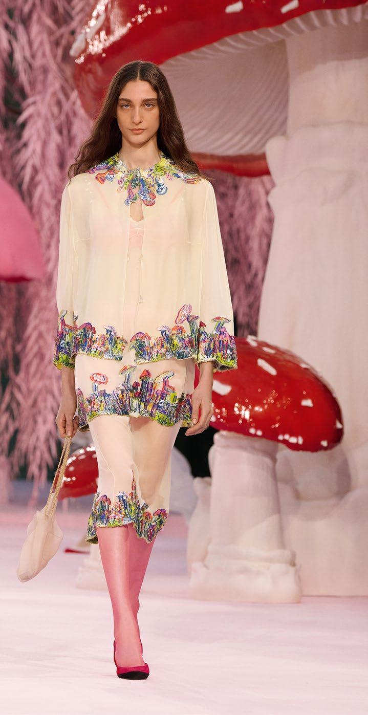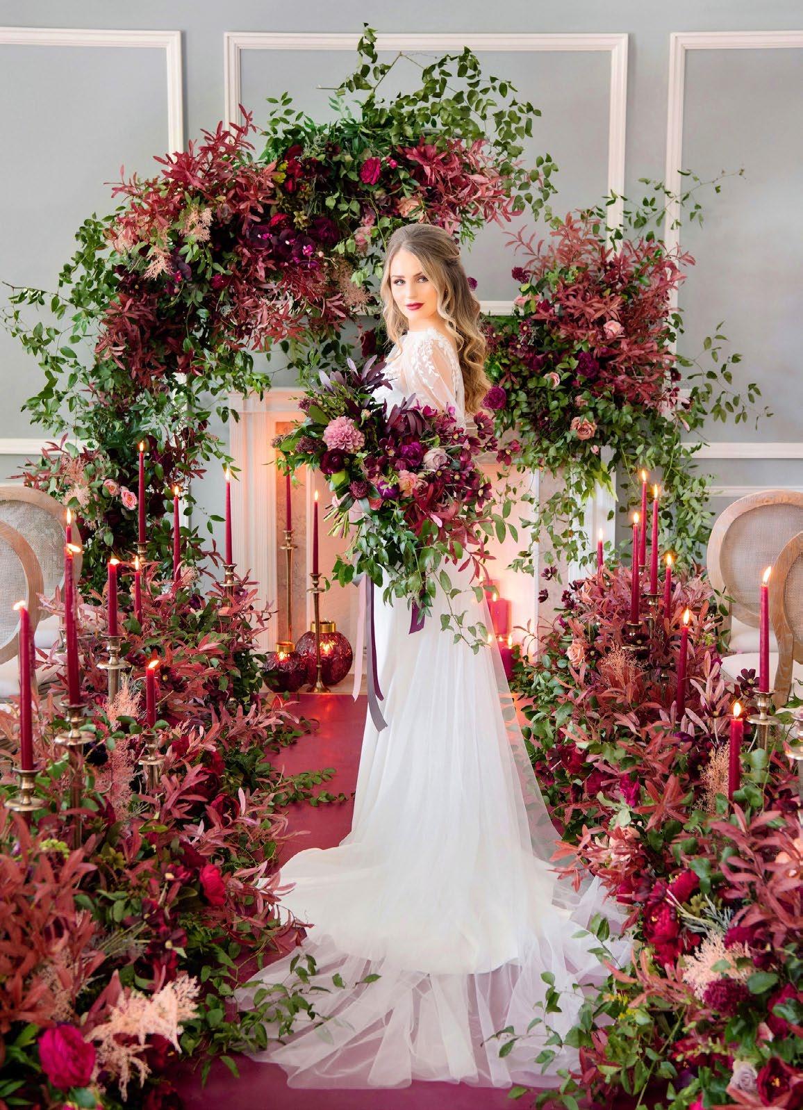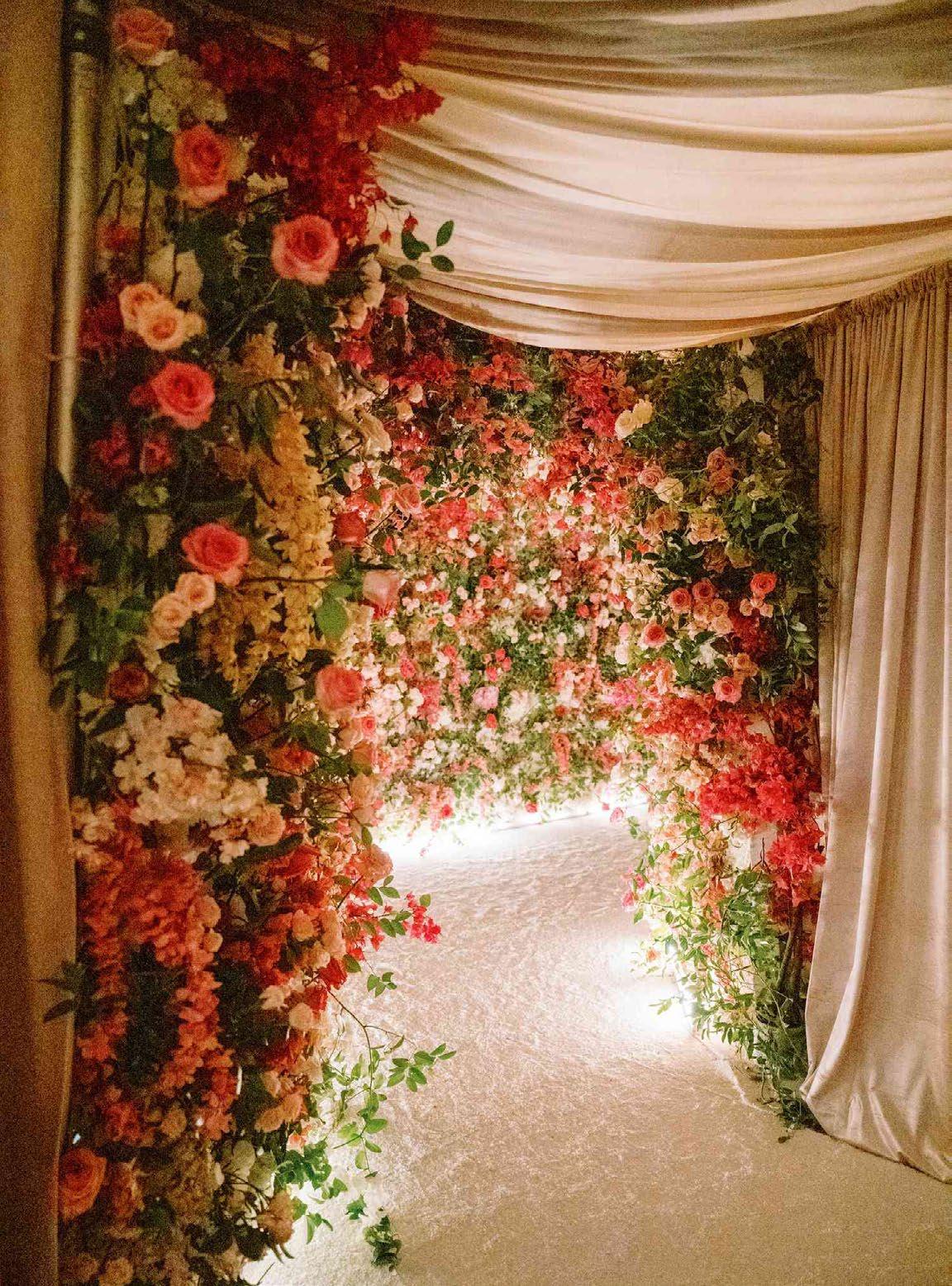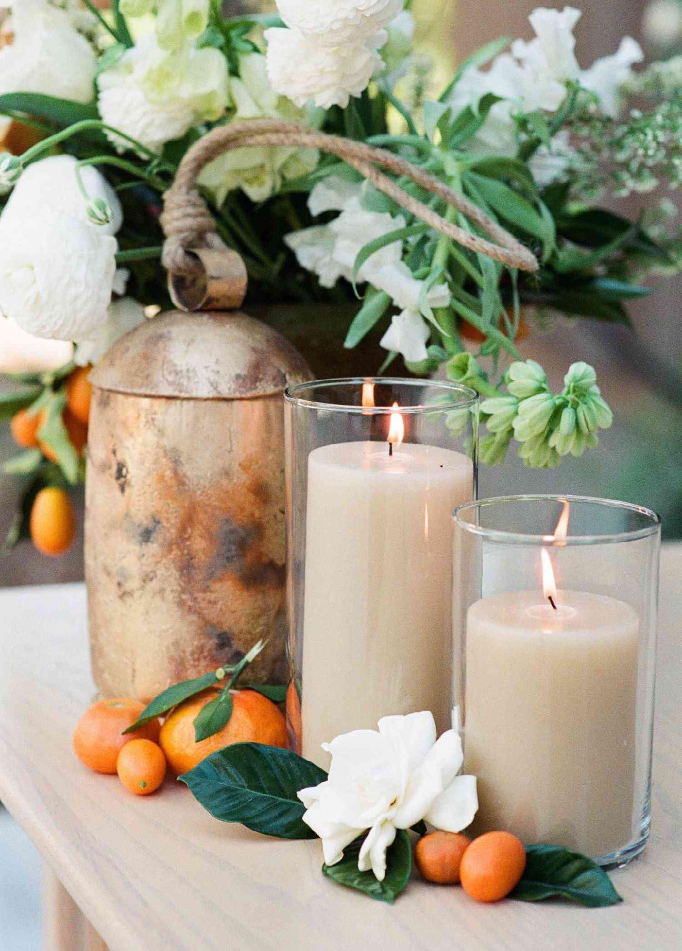 la decoración floral evoluciona hacia composiciones artísticas que incluyen frutas (como cítricos e higos) y ramas escultóricas, creando escenas poéticas en lugar de ramos tradicionales. los “prados florales” a ras de suelo y las nubes suspendidas ganan terreno para no obstruir las vistas. En cuanto a la iluminación, las velas cobran un rol principal en cascadas o estructuras aéreas, acompañadas de lámparas decoradas con vegetación, priorizando una luz cálida y envolvente.