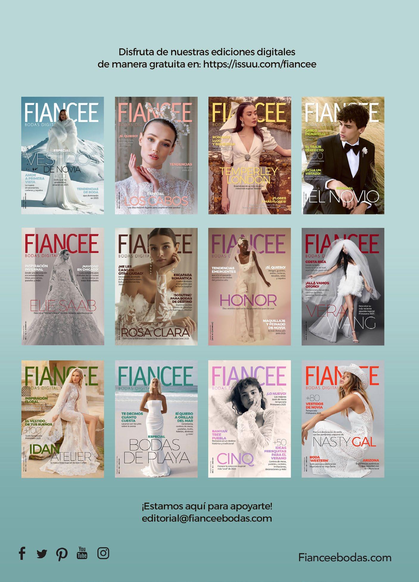 FIANCÉE BODAS DIGITAL no se hace responsable del contenido publicitario y promocional que aparece en la revista, ésta será responsabilidad del anunciante; ni tampoco asume responsabilidad alguna de las opiniones vertidas por los colaboradores en sus artículos.