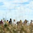 Erick Perez and other Climate Beneficial Cotton Tour attendees in the field at Bowles Farming Company in Merced County.