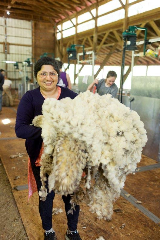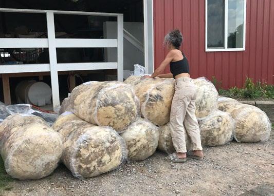 TOP Laura Sansone, founder of NY Textile Lab, collecting wool from New York Climate Beneficial wool and alpaca growers for the Carbon Farm Network wool pool.