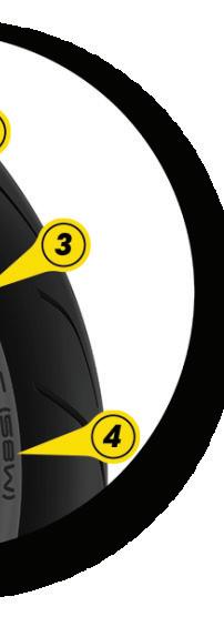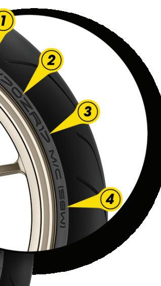 • Sharply defined new tread pattern with lower groove density puts more rubber on the ground at all lean angles. New taller profile with improved corner entry and high-speed stability at full lean.