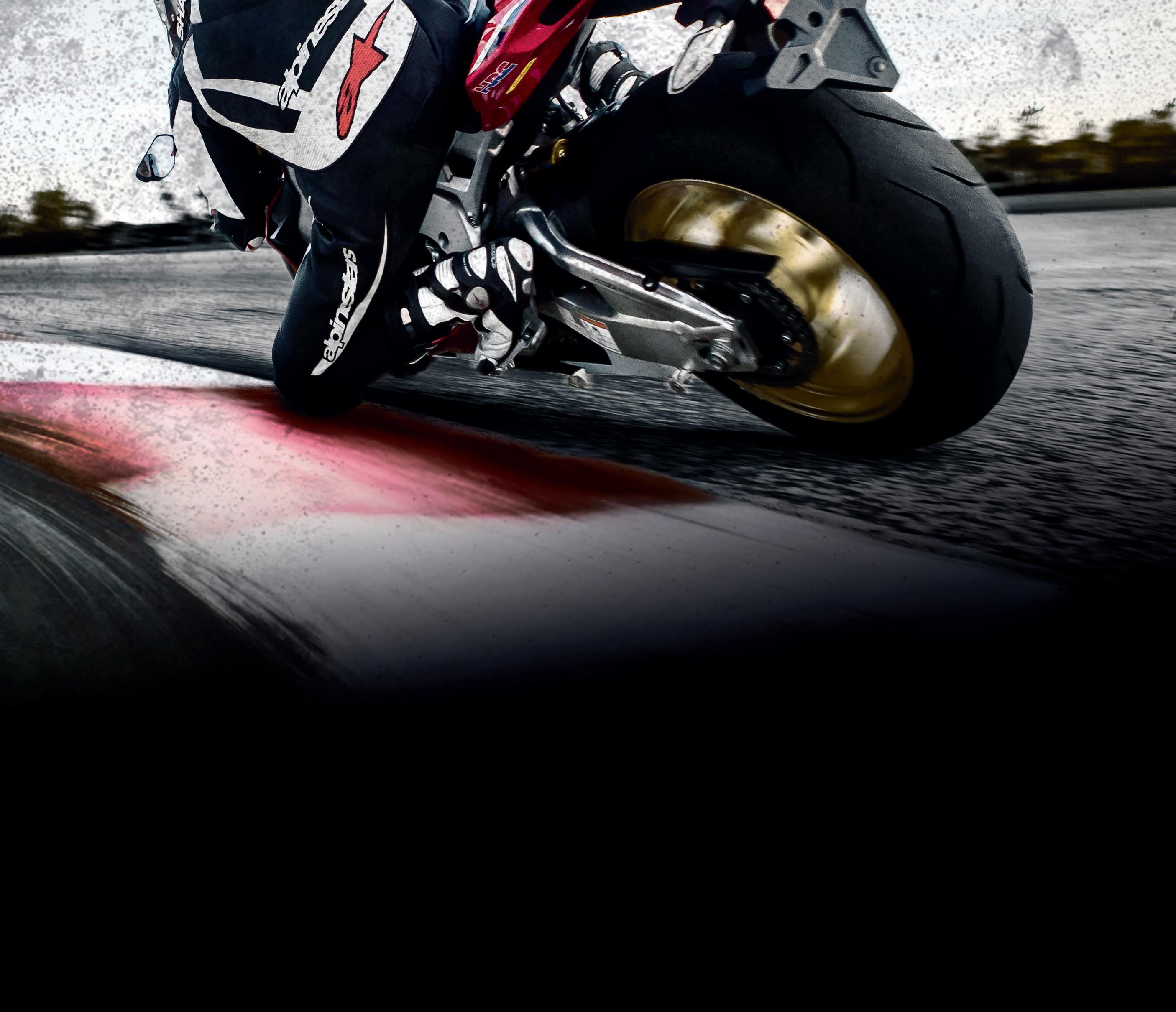 MULTI TREAD (MT) TECHNOLOGY is our latest innovation. Years of success in global Superbike & Endurance racing have resulted in the development of a pioneering multi compound, which is transferred to many of our Sportmax street & track products. The central traction compound contacts the road when the motorcycle is upright. It uses a tougher cooler running compound that maintains straight-line stability, traction, braking and most importantly longer tread life. The lateral compound that contacts the road when the motorcycle is leaning over incorporates a rubber compound specifically developed to enhance grip at maximum lean angles.