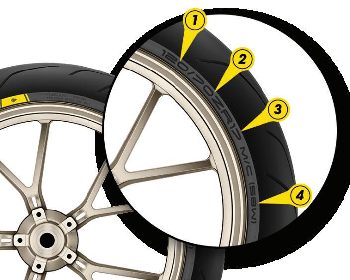 The ‘58W’ indicates the load and speed indexes of the tyre and should always be looked at together when you buy a new tyre. In this case the ’58’ denotes that the tyre is rated for a maximum carrying weight of 236kg at maximum pressure. The “W” represents the maximum speed for the tyre when it is correctly inflated and being used under load, in this case 270km/h. Please remember however that when buying new tyres that you match the speed rating with the speed capabilities of your motorcycle, if exceeded, this risks tyre failure, hence you should always replace a tyre with one of at least the same speed rating so that you don’t reduce the speed capability of your bike.