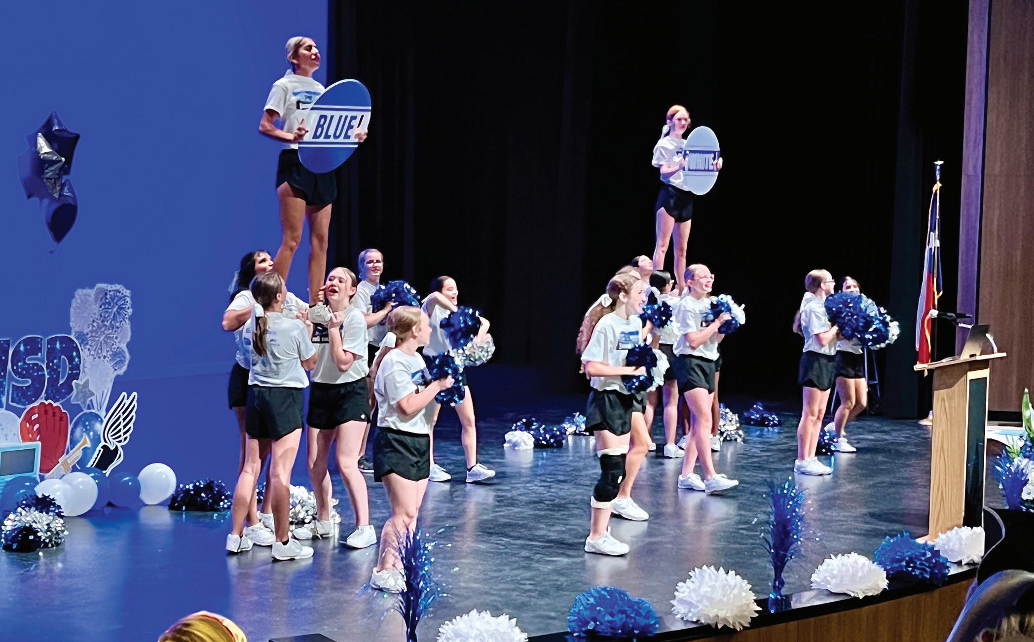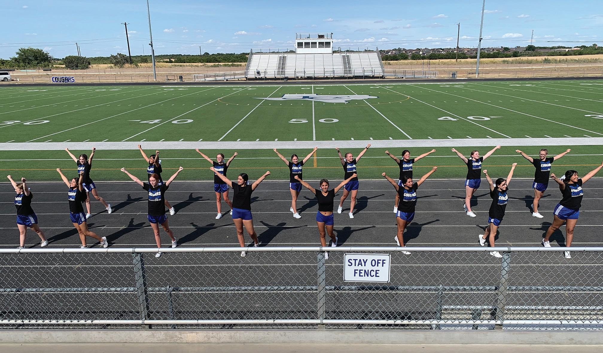 The cheerleaders will also be simultaneously preparing for the UIL Spirit competition in January. Coach Zoretic explains, “Fortunately, while it is very competitive, there are limitations on what teams are allowed to do in competition, which keeps the field level for all teams. At the high school level, the focus remains on school spirit so we begin focusing on that from day one by incorporating elements into and from our game day and sport routines.”
