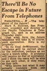 Iknow I’m getting old but I am still going to brag about the fact that my generation will always be the one that happily sandwiched the Age of Information. We understand and enjoy technology so much because we remember what it was like when we didn’t have it. I stole this 1953 snippet from Facebook. It is amusing because I grew up in a house with a phone that was attached to the kitchen wall by a curly cord that only reached to the sink so there was no such thing as talking without parents listening, or even answering before you knew who it was. Lo and behold, Mr. Sullivan was probably considered a nut back then but he was clairvoyant after all. Maybe he was a time traveler and he hasn't shared that technology with us yet.