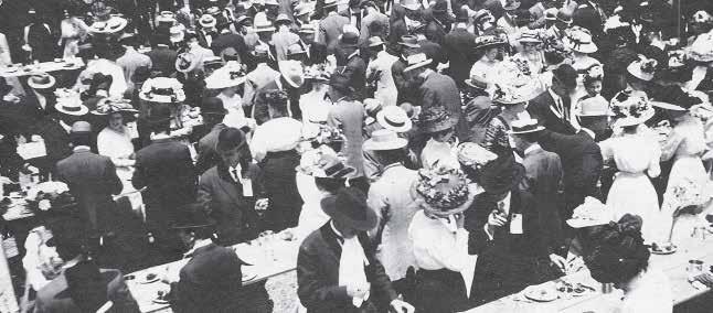 While it is unknown which school hosted the first homecoming celebration, gather ings began taking place in the early 1900s at colleges like Southwestern, Baylor, Michi gan, Indiana, and Missouri. “It was beyond any doubt the greatest day known in the history of any educational institution in the State,” said Southwestern’s newspaper, The Megaphone, after the inaugural event in 1909 (facing page). The event was inspired by a former Southwestern employee, Allen K. Ragsdale, who suggested that former stu dents and professors be invited back to the university on San Jacinto Day. It turned into a community initiative, with Georgetown residents and former students raising funds, providing homes, decorating town build ings, and preparing and serving a barbecue picnic at San Gabriel Park, where senior classmates waited tables.