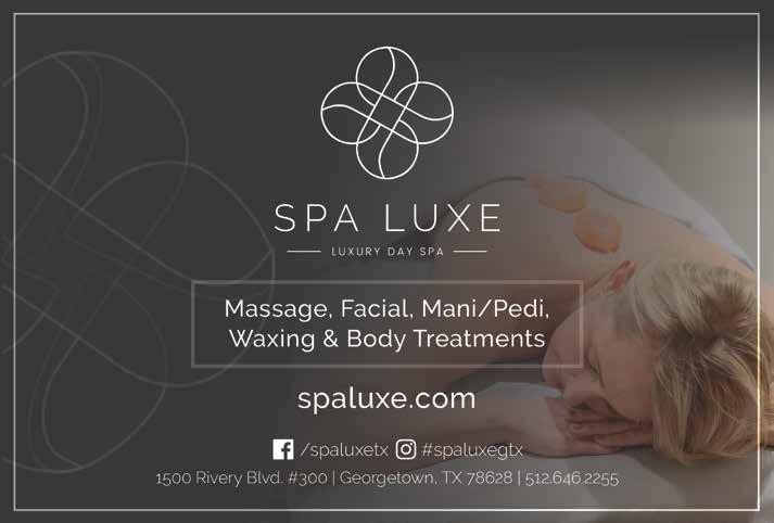 2 3OCTOBER 2022OCTOBER 2022 Dr. Henry Lucid, MD Heart and Vascular of Central Texas Clinical Cardiology and Cardiovascular Imaging Echocardiography Nuclear Cardiology Vascular Ultrasound Positron Emission Tomography Computed Tomographic Angiography Cardiac Magnetic Resonance Imaging 16010 Park Valley Drive Suite 200 • Round Rock 4749 Williams Drive Building 3 • Georgetown 1460 E. Whitestone Blvd. Suite 104 • Cedar Park Appointments & General Inquiries: 512-206-2999 heartvasculartexas.com Cardiac PET/CT Angiography Sets the New Standard in Cardiovascular Care State of the Art Technology • Coronary Artery Diagnosis University Level Technology • Williamson-Travis-Burnet-County ISCHEMIA TRIAL Anatomy & Flow Sensitivity/Specificity 512.548.6474 office@moorelibertybuildings.com MooreLibertyBuildings.com Located halfway between US Hwy 183 and Ronald Regan Blvd. on Hwy 29 STOP IN AND CHECK OUT OUR INVENTORY! Fully finished cabins, playhouses, decks, sheds and carports INTRODUCING our NEW Diamond Series finished-out interior sheds! Let us know if we can help with your man cave, she shed, backyard office or hobby space! WE DO GARAGES! Metal, Wood, Stone or Stucco - with Custom Garage Door Options! LOCAL & FAMILY-OWNED MOORE LIBERTY BUILDINGS Space for You, Storage for Your Life Prices starting at $67 a sq. ft. PERFECT for a Man Cave or She-Shed!