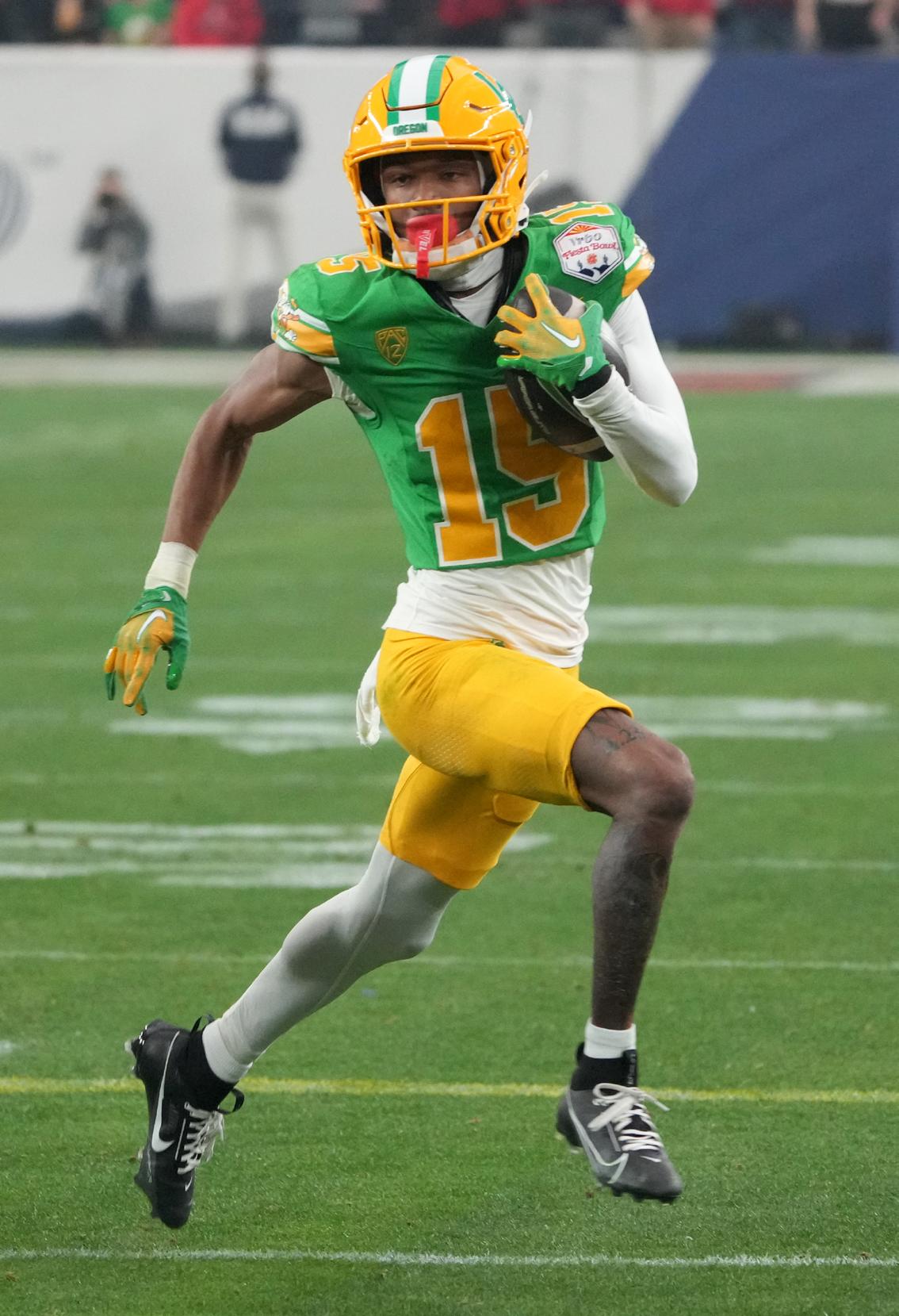In the 2024 Vrbo Fiesta Bowl, Oregon quarterback Bo Nix connected with Johnson, his adopted brother and former high school teammate, for his final collegiate touchdown to give the Ducks a 38-6 lead over Liberty. Johnson led all receivers with 172 yards on 11 receptions, including the touchdown.