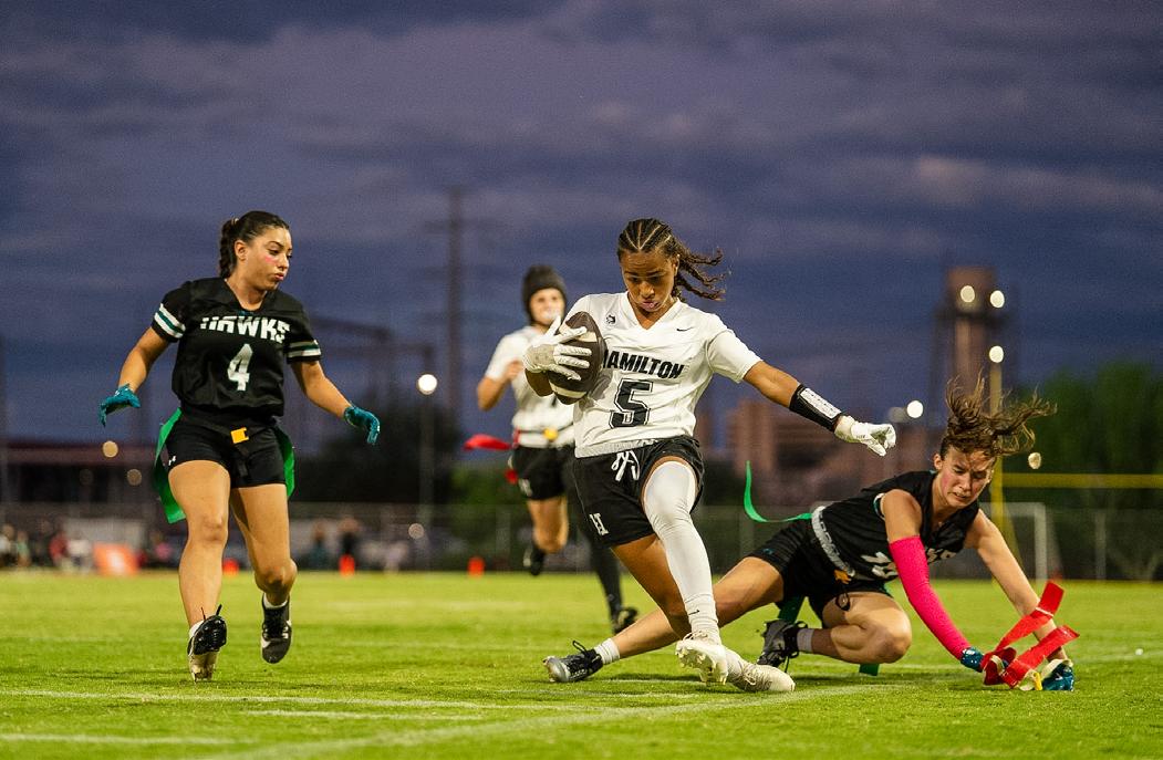 Hamilton flag football continued its dominant start to the season, winning the first-ever Fiesta Bowl Copper State Invitational held at Arizona State on October 9 and 11. The tournament included top teams from the 6A, 5A and 4A conferences.