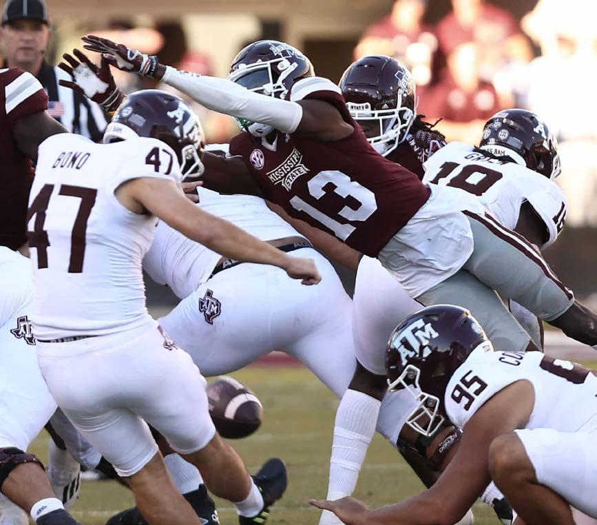 “I just took advantage of it and blocked it… I saw [Decamerion Richardson] pick it up and I just wanted to go have fun with him in the end zone. I’d do anything to help my brother out.” - Mississippi State’s Emmanuel Forbes on his blocked field goal and blocking of Texas A&M players on the “block-6” return