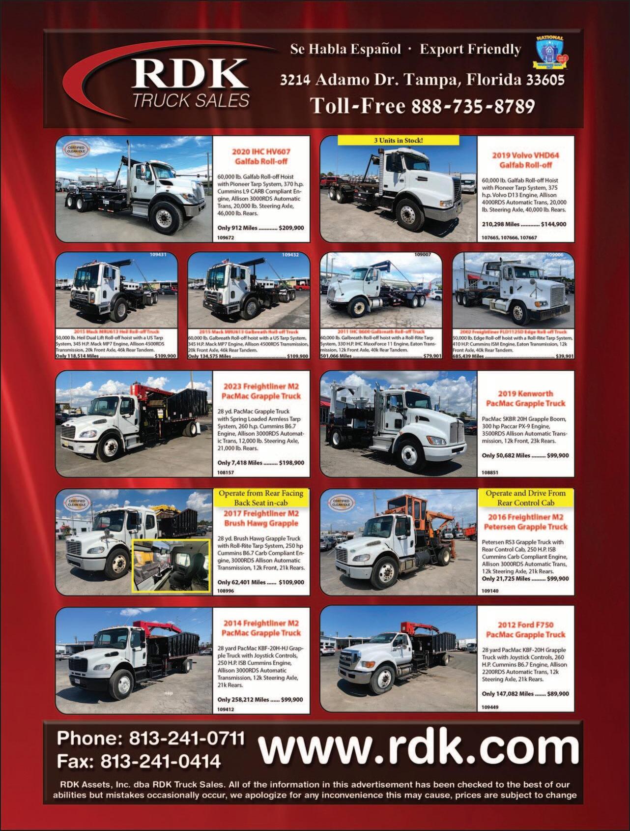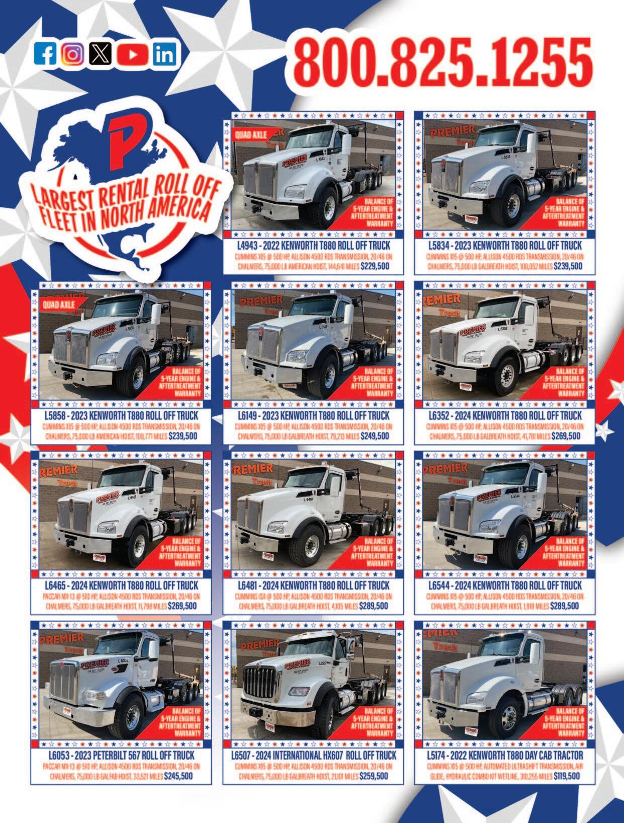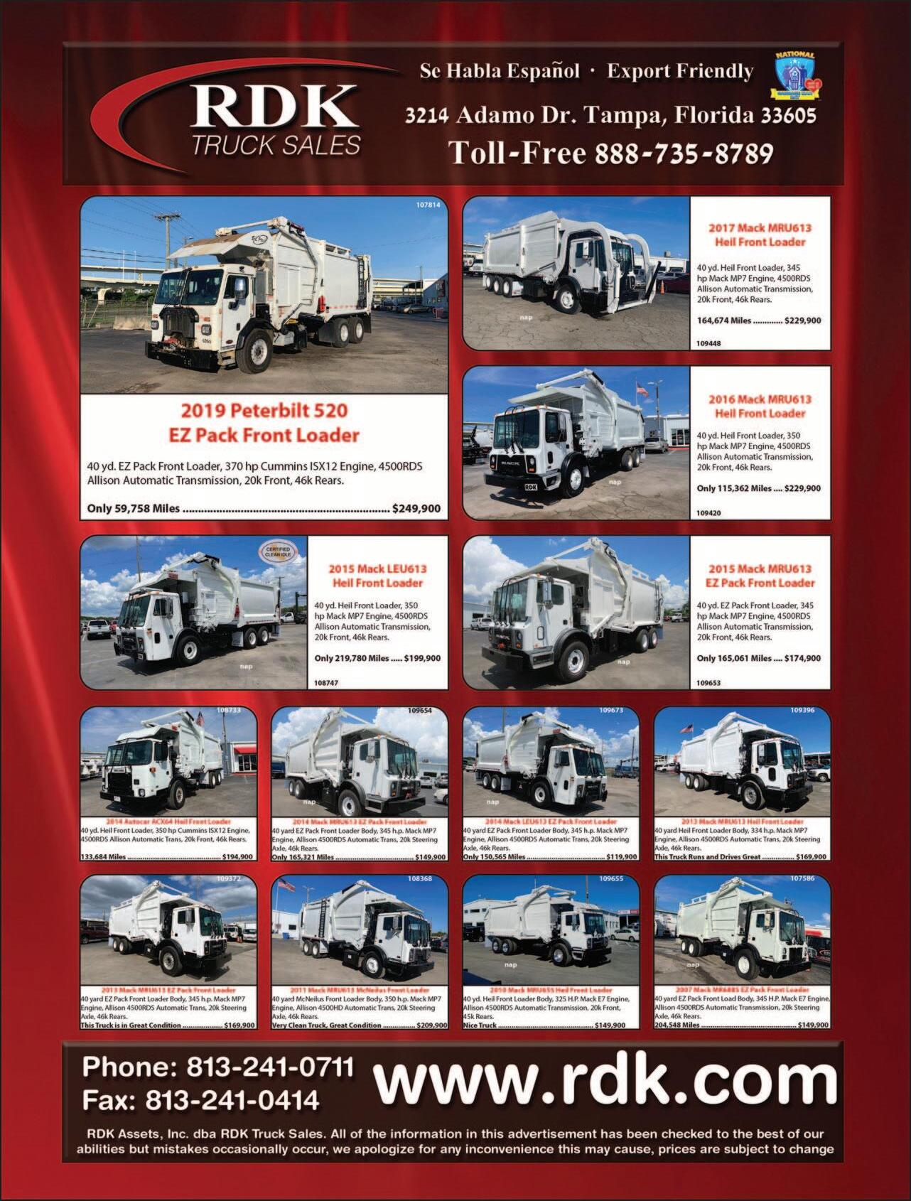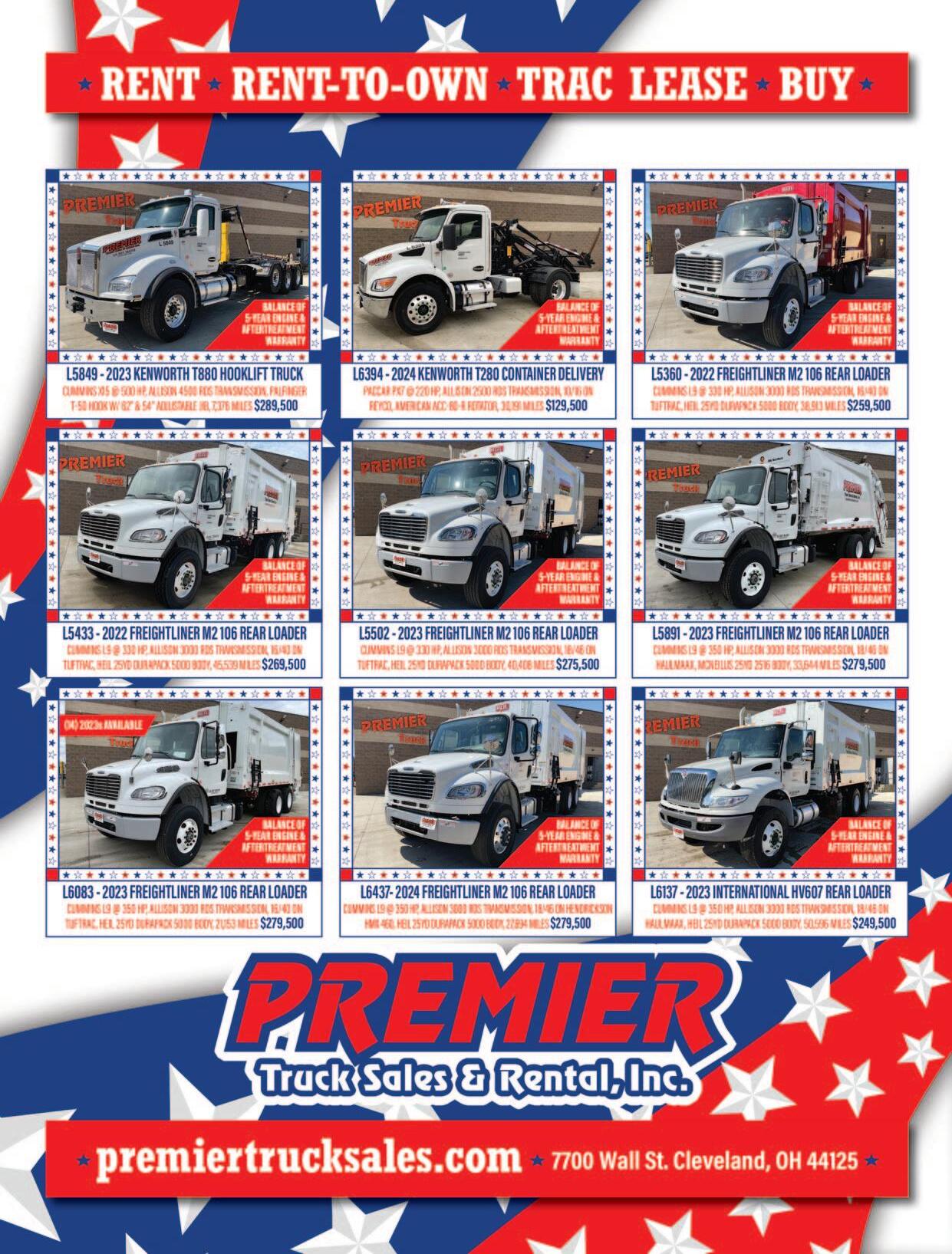 With a large inventory of waste and recycling collection vehicles including non-CDL and CDL single compartment and splitbody rearload packers from 11-32 yd, automated side loaders, front loaders, roll off trucks and more.
