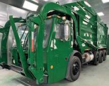 2014 MACK MRU613, MP7, Allison, Overhead reever, twin cart tippers, in process of reconditioning, 25yd E-Z Pack $159,000