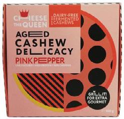 In Bulgaria, Cheese the Queen launched a fermented cashew vegan cheese enriched with vitamins and live cultures and flavoured with pink peppercorn that provides 18 g protein per pack