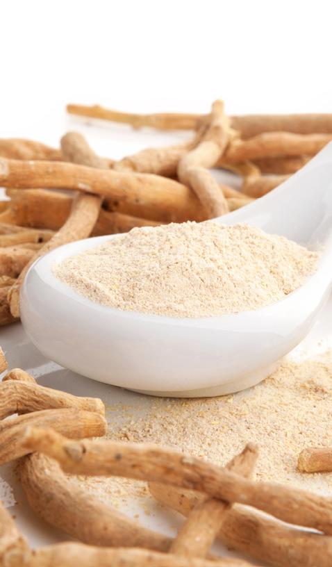 Plant adaptogens and extracts, such as ashwagandha, rhodiola extract, and cannabidiol, which are claimed to reduce cortisol, boost endorphins, and reduce inflammation, respectively.