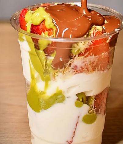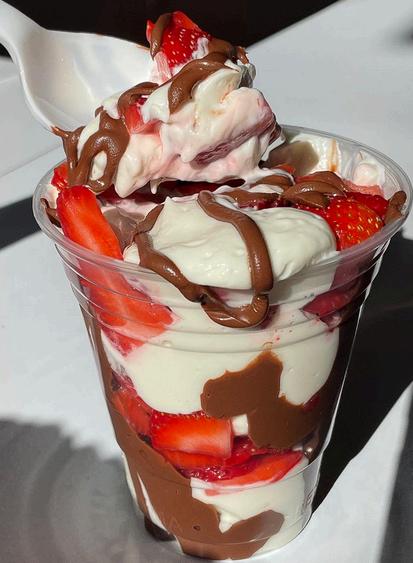 Fresas con crema, nutella y crema de pistacho
