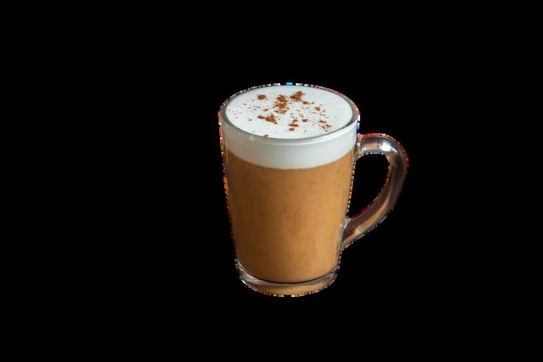 Café espresso con leche vaporizada y bastante espuma de leche encima