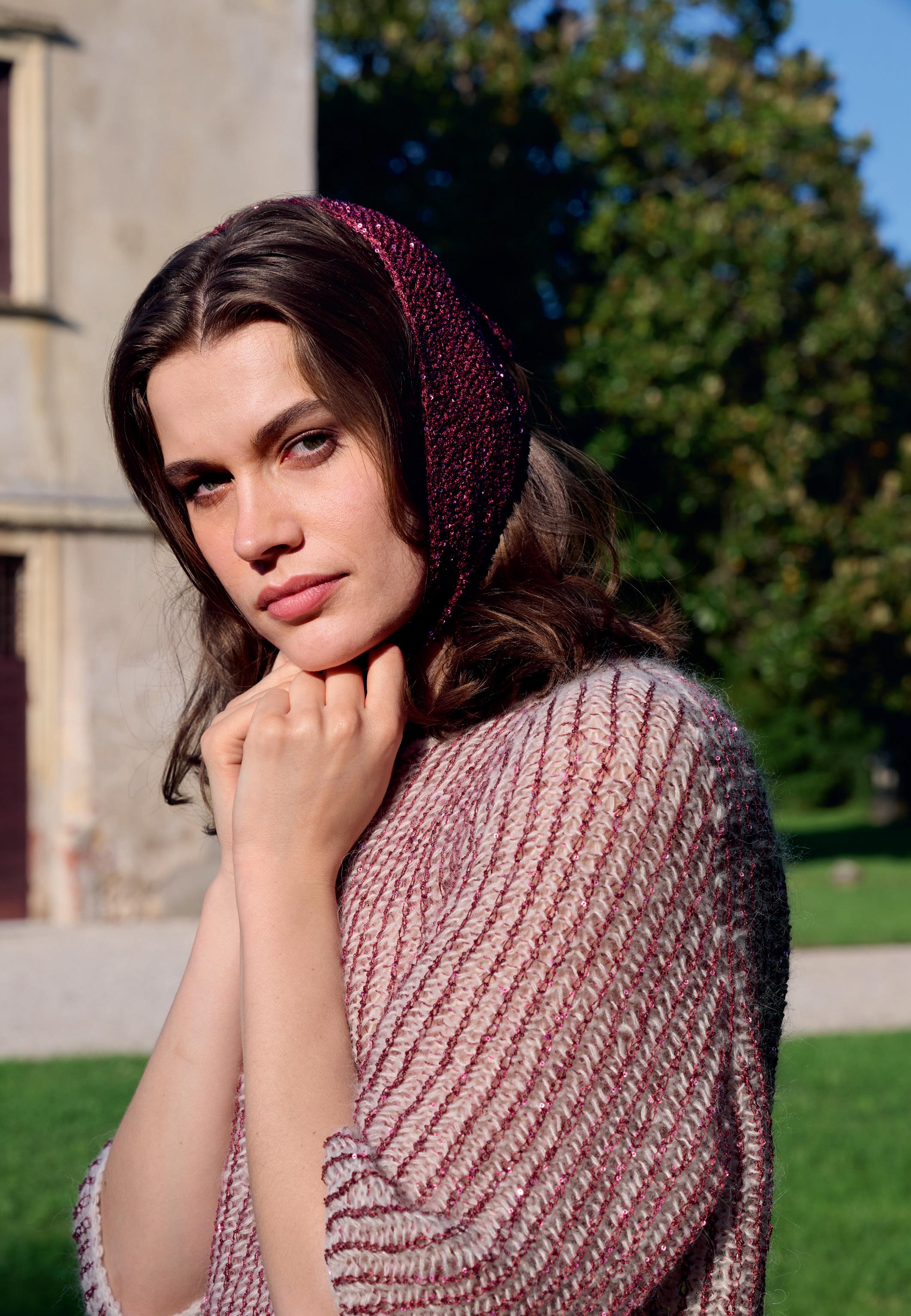 Infos zum PULLOVER links und dem KOPFTUCH rechts finden Sie auf Seite 9. GLAMOUR