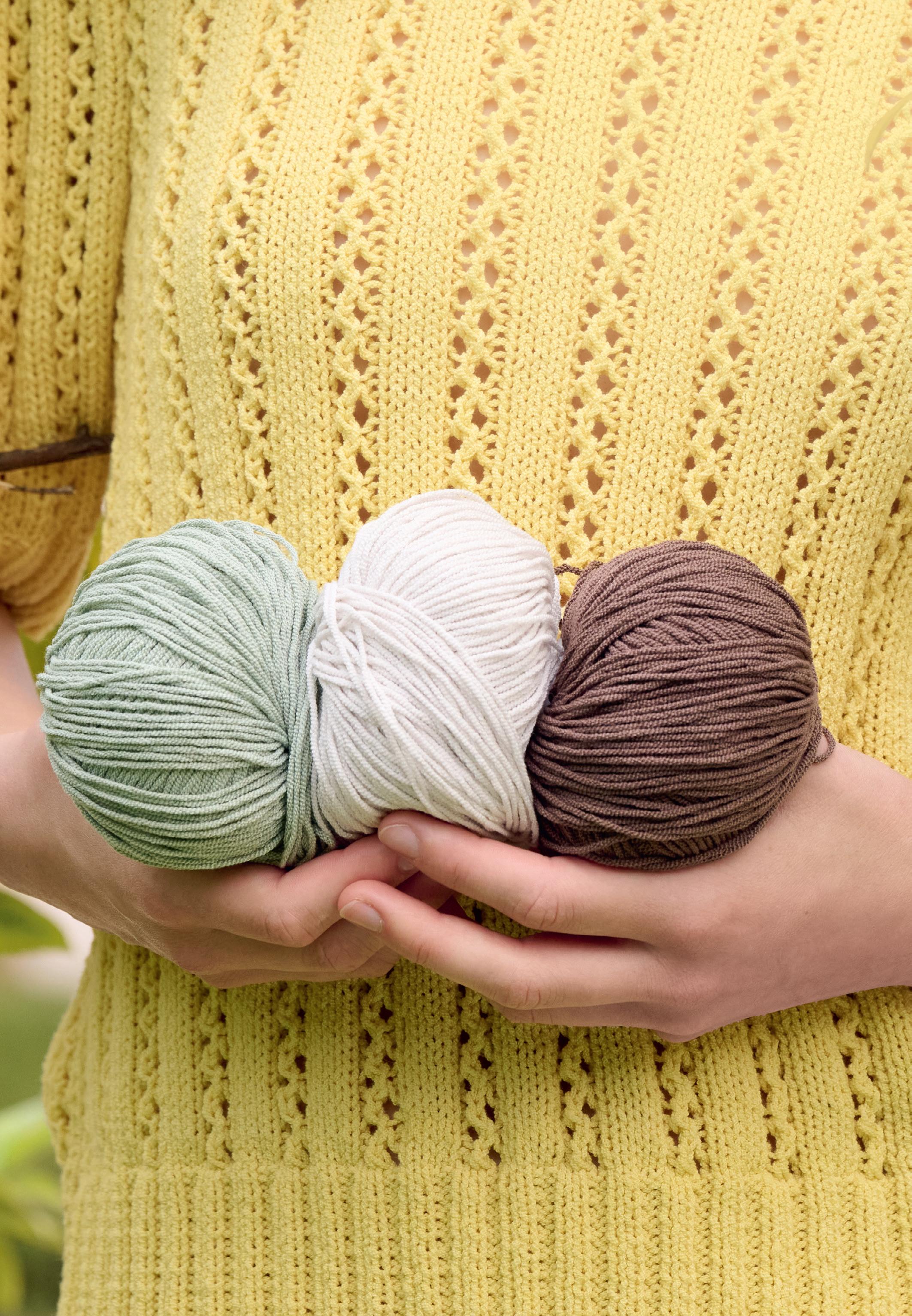 Mehr Struktur, mehr Farbtiefe, ein gleichmäßiges Maschenbild und einen sommerlich-kühlen Griff. Gioia gibt es in 18 Tönen