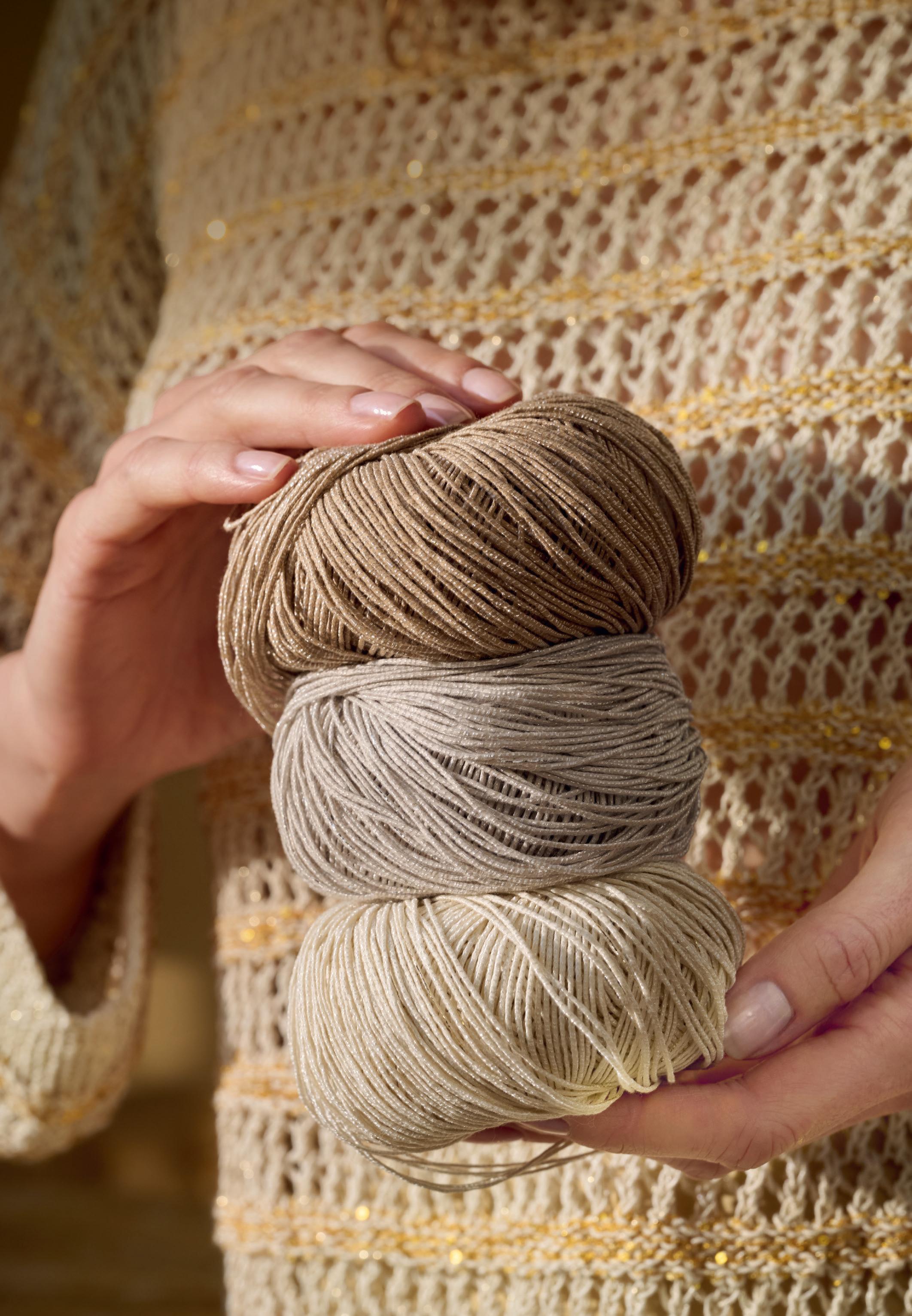 Neue Effektgarne schaffen bewegte Oberflächen oder sorgen, mit Lurex, Pailletten oder auch Perlen, für einen modernen, subtilen Glamour. Zeitlos chic und molto elegante.