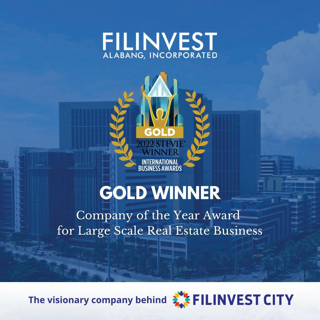 Filinvest Alabang, Inc. (FAI)—the visionary company behind Filinvest City—bagged the GOLD STEVIE® Company of the Year Award for Large Scale Real Estate Business Category from the International Business Awards. FAI also received the People’s Choice Stevie Award for the Favorite Company category for three consecutive years.