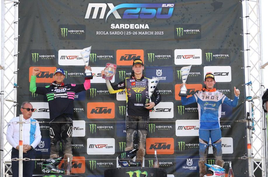 The first round of the EMX250 Championship of the season took place in Sardegna and has concluded with Andrea Bonacorsi winning for the second year in a row with some strong racing throughout the weekend.