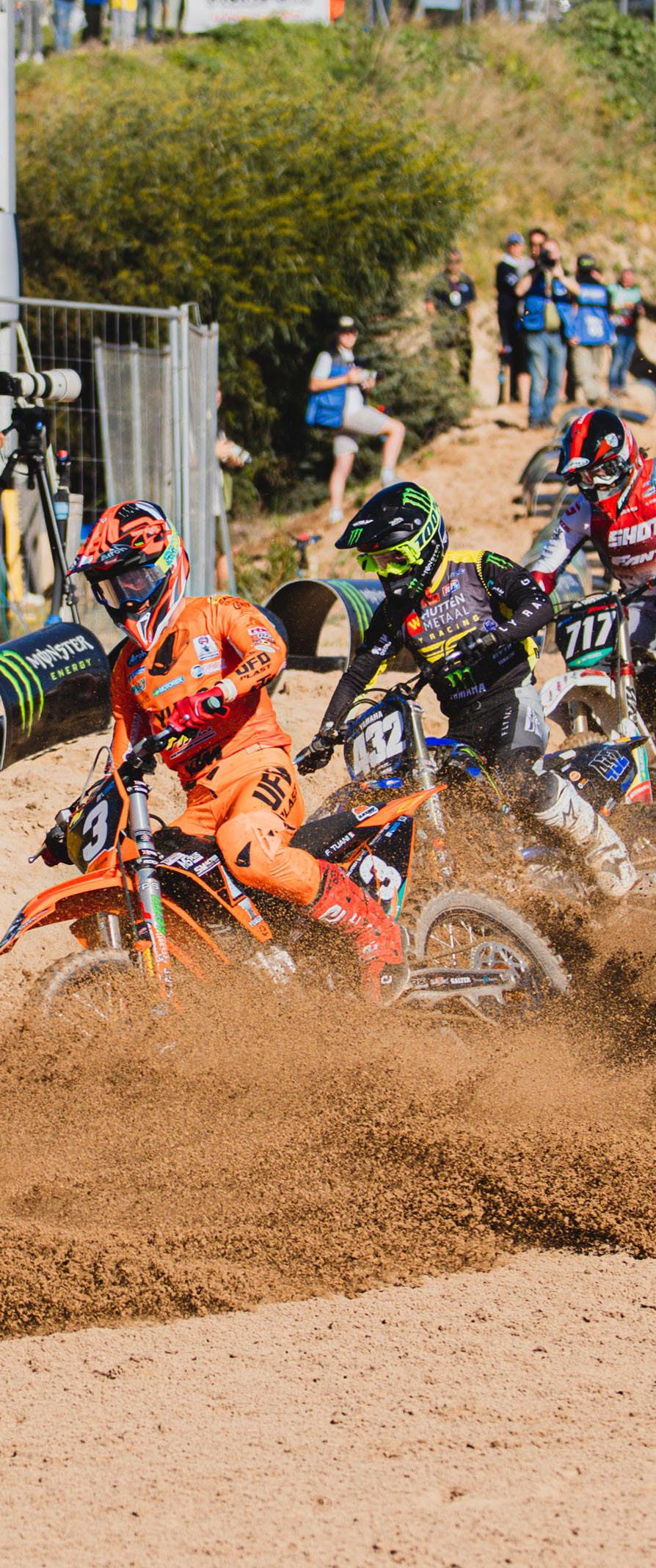 The first race of the EMX250 class saw a great start with three riders detaching themselves with Ivano Van Erp and Andrea Bonacorsi from Hutten Metaal Yamaha Racing Team and Fantic Factory Team Maddii’s Cas Valk taking the lead with Van Erp taking the better of the others over few turns until Valk made a move on the inside to be 1st on lap 1.