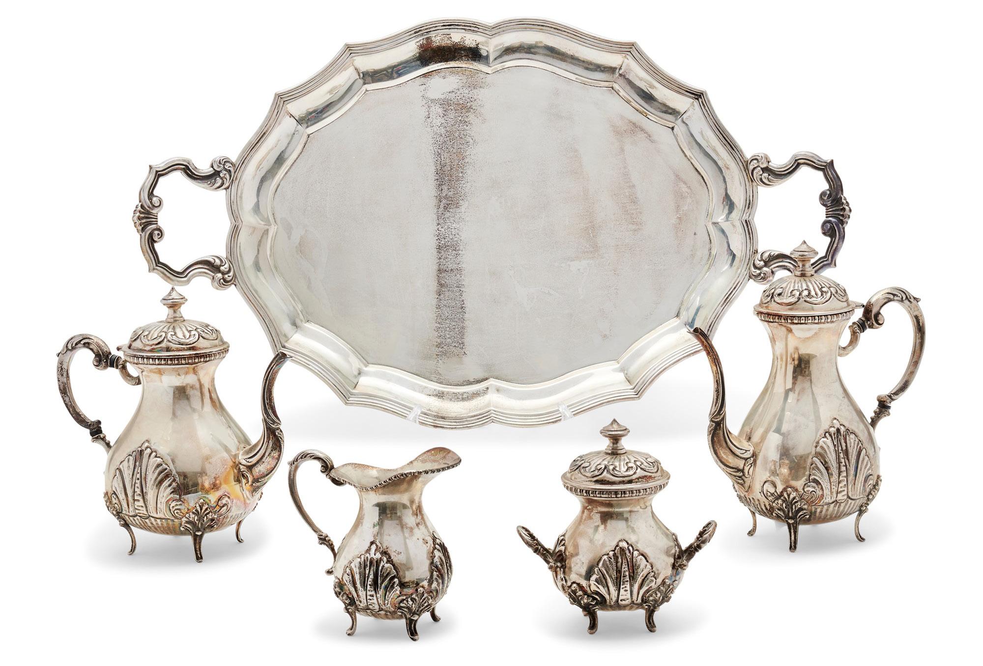 14 SERVIZIO DA TÈ CON VASSOIO IN ARGENTO, ITALIA XX SECOLO