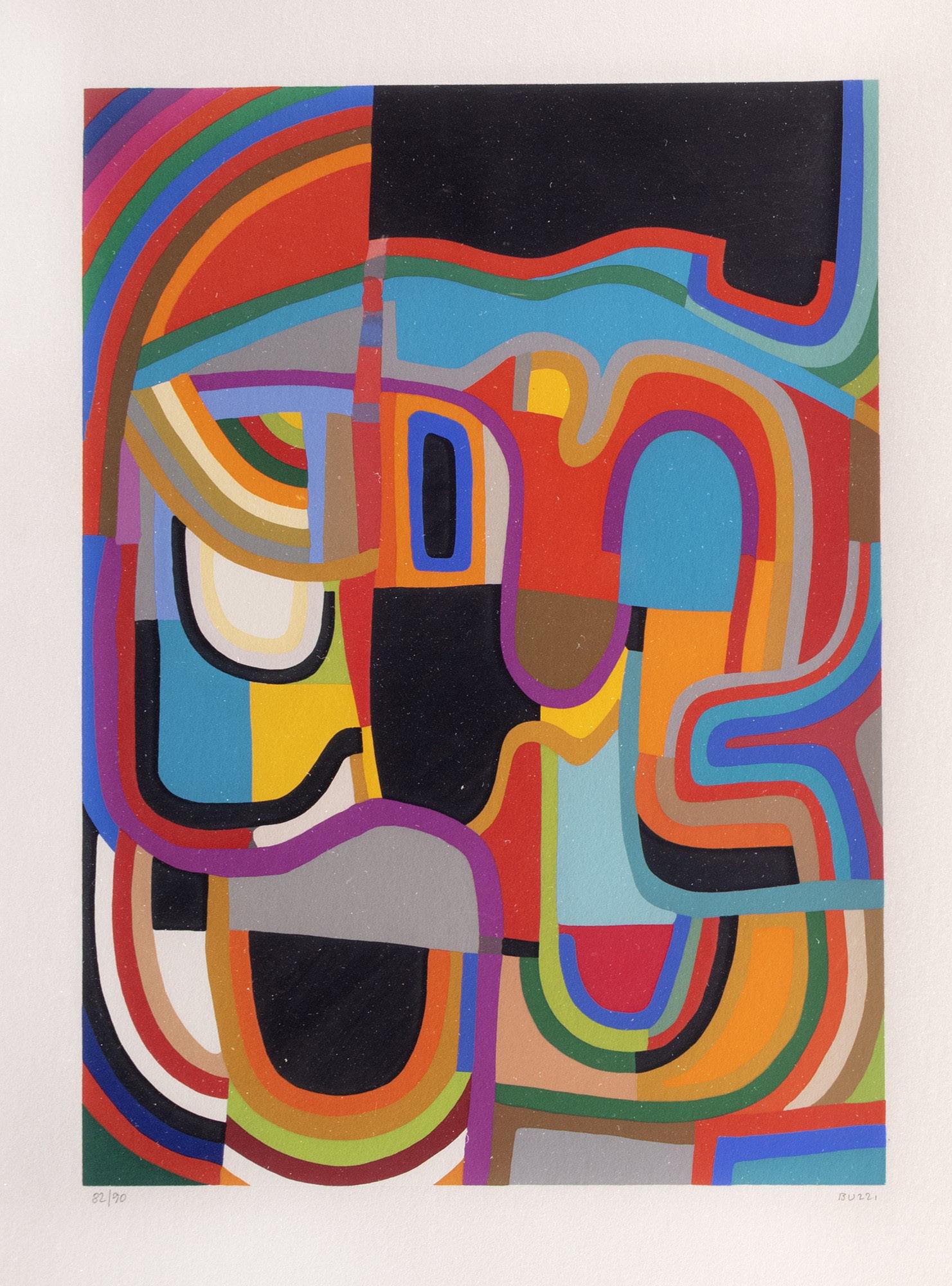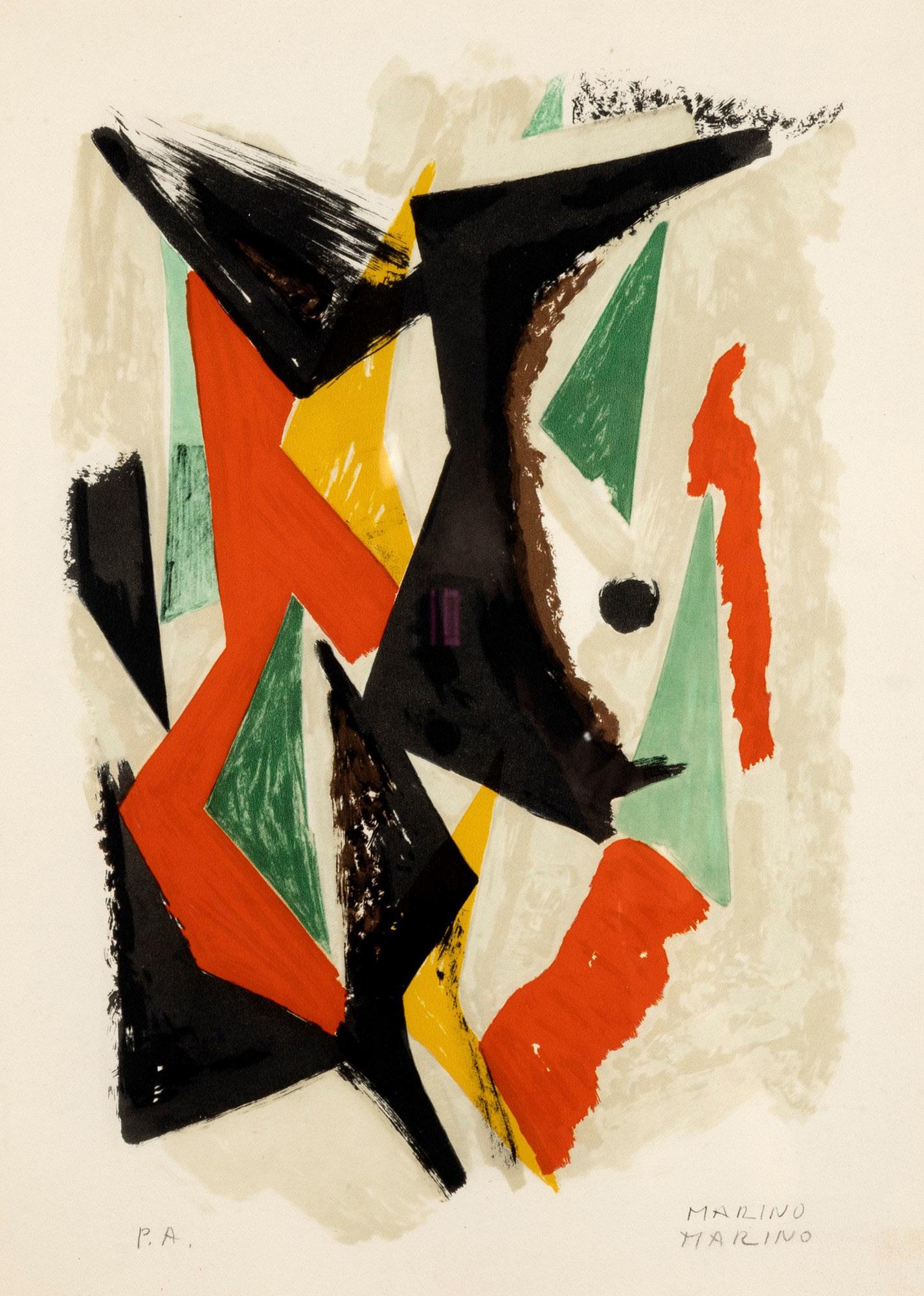 Composizione rosso - verde litografia a colori, es. 22/60 cm 70 x 50 (misure del foglio), (sc)