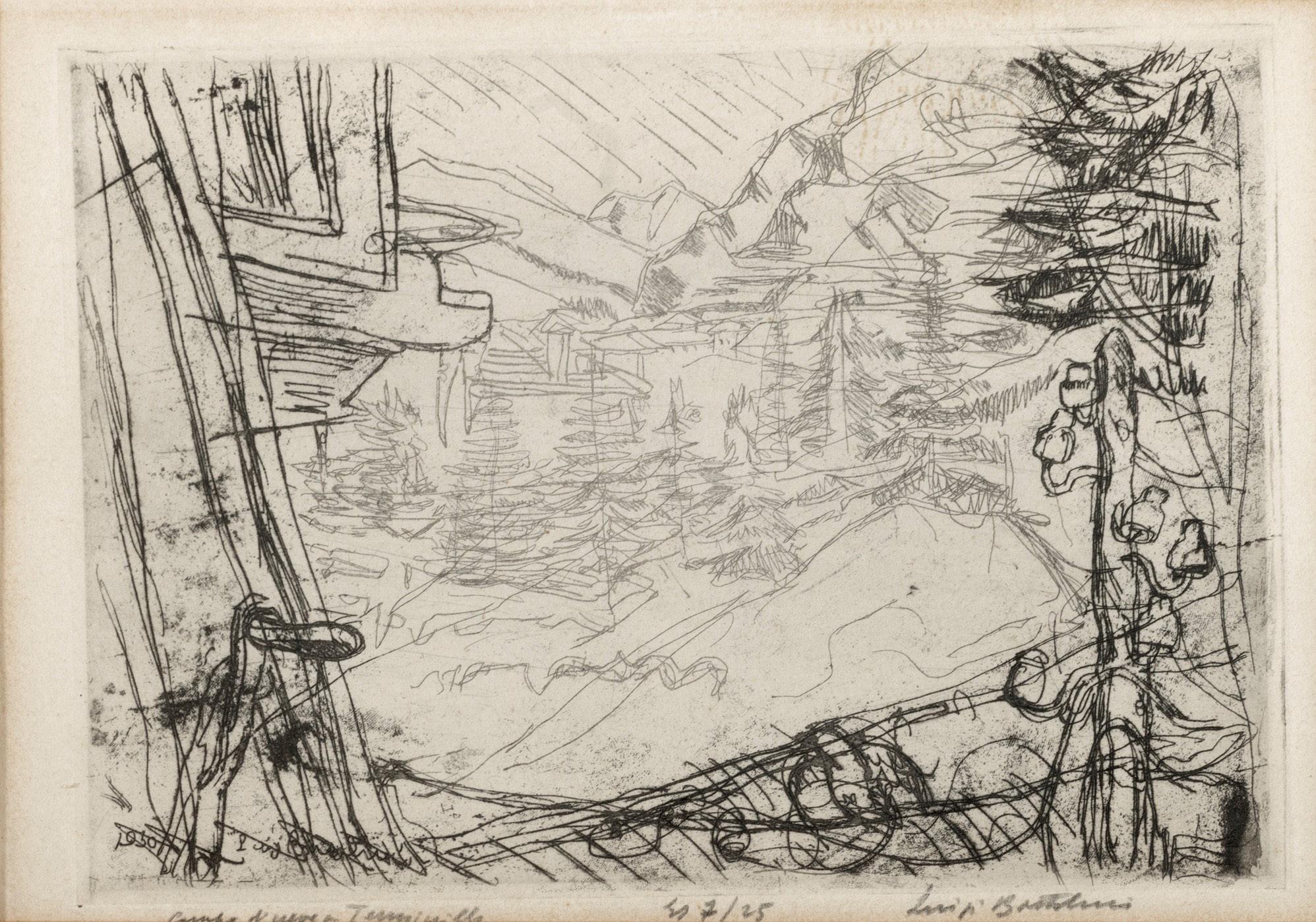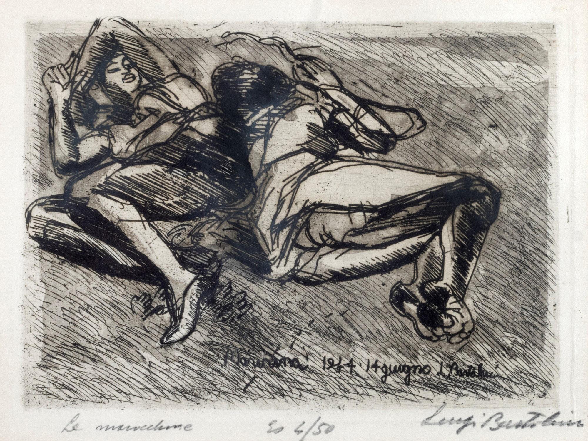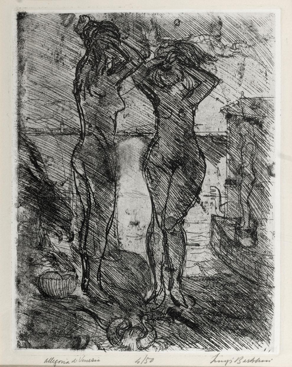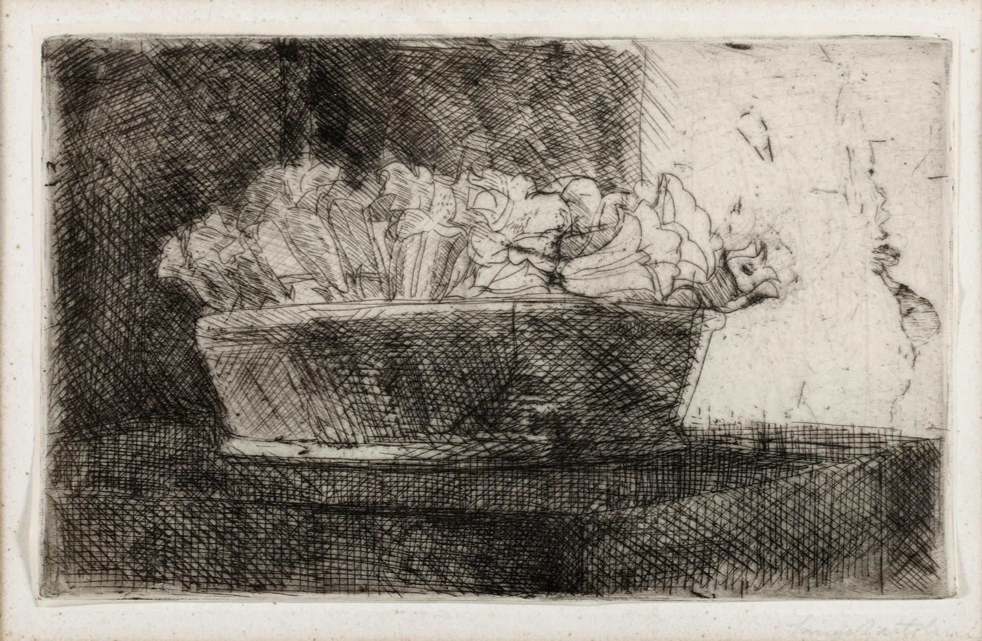 Firma a matita in basso a destraIn basso a sinistra timbro a secco ed altre timbro a inchiostro dello stampatore Grafica