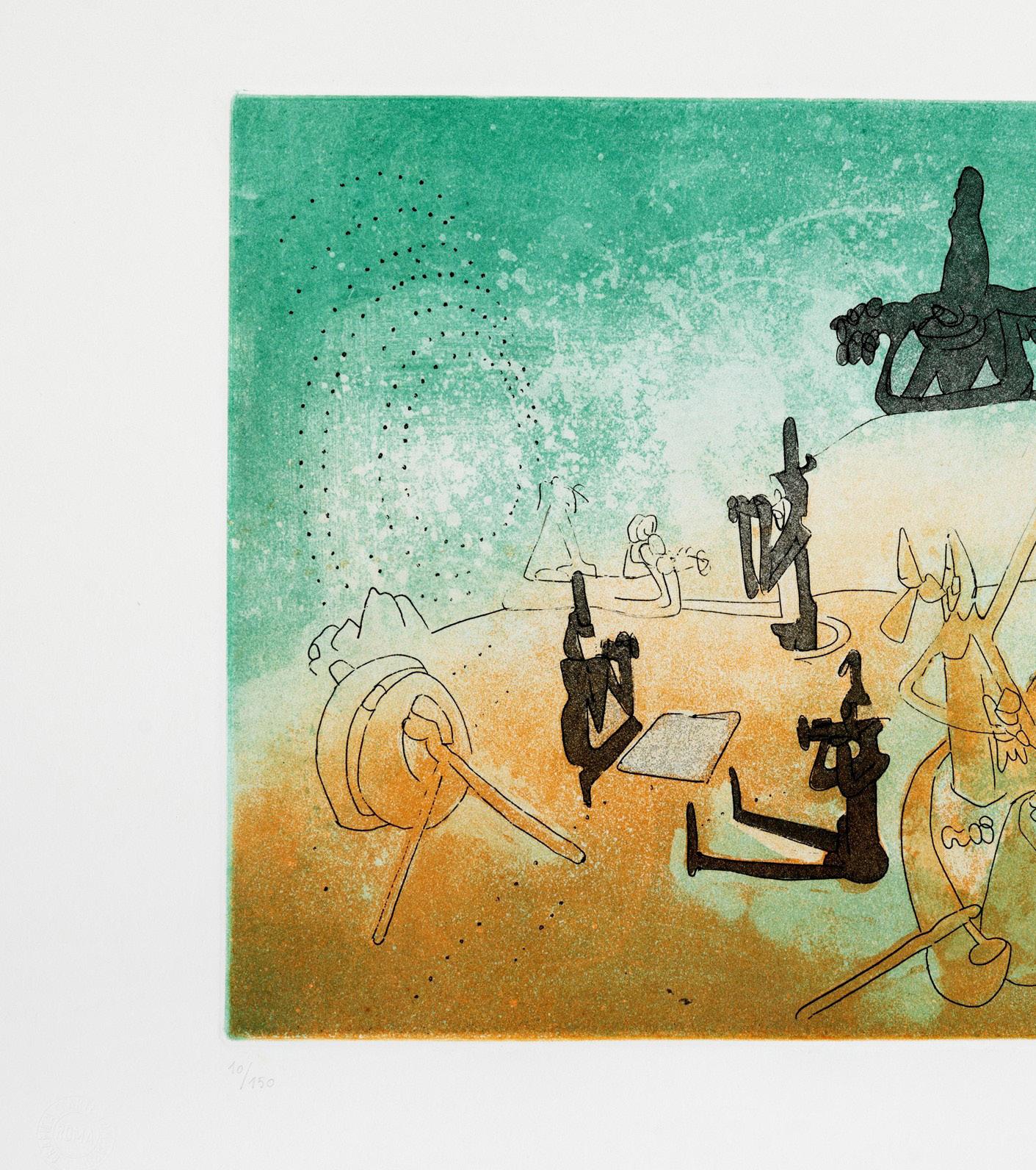 La ricerca del colore acquaforte acquatinta a colori, es. X/L cm 51,5 x 78 (cm 70 x 100 misure del foglio)