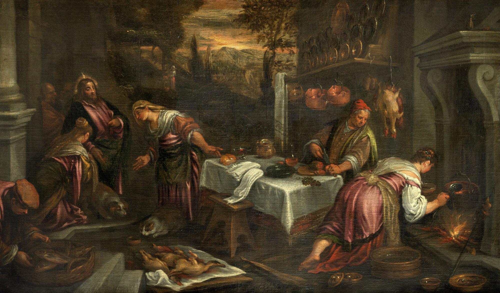 Il dipinto è un “ricordo” in dimensioni ridotte tratto dall’opera di omonimo soggetto, dipinta da Pierre Subleyras (1699-1749) nel 1737 per il refettorio del convento di Santa Maria Nuova ad Asti che, requisita dalle armate napoleoniche, è oggi conservata al Musée du Louvre, Parigi.