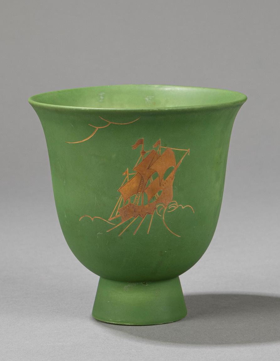 della serie Anni Trenta in vetro soffiato nella tonalità del verde menta. Firma e data a punta sotto la base, etichetta originale. Produzione Venini.